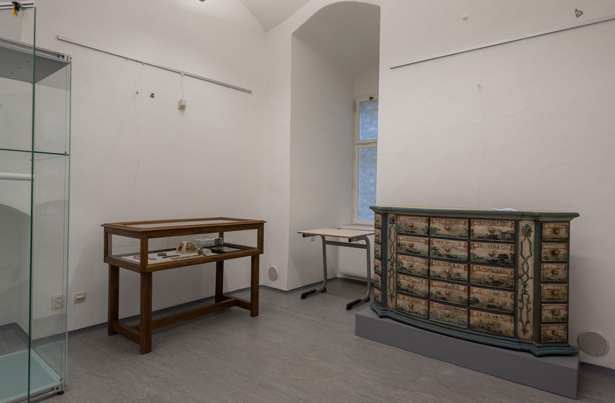 Základ tematických celků mapujících život a působení jezuitů tvoří předměty nepochybně spjaté přímo s Telčí, které většinou pocházejí ze sbírek v regionálních institucích. Expozici autorky doplnily o další exponáty, které mají sice volnější vztah k jezuitům či regionu, ale vhodně doplňují a utvářejí představená témata. „Například se dochovala část původního vybavení kolejní lékárny. Jedno malované repositorium (skříň pro uchování surovin) bude na výstavě k vidění. Téma jezuitské lékárny by však nemohlo být prezentováno pouze lékárenskou skříní a případně nádobami, které představují péči o tělo, neboť v baroku byla většina nemocí, jak bychom dnes řekli, psychosomatického původu. Při léčení a předcházení nemocem se neužívala pouze přírodní léčiva, ale spoléhalo se také na pomoc světců. Proto je toto téma prezentováno společně s tzv. duchovní apatykou. – Návštěvník si bude moci prohlédnout barokní škapulíř, loretánskou čepičku a další předměty lidové zbožnosti“, vysvětluje Hnilicová.