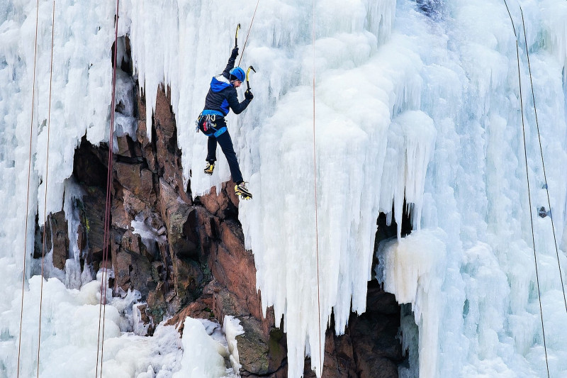 Pětačtyřicet metrů vysoký ledopád nabízí vyžití i svátečním lezcům