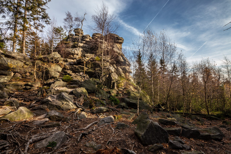 V nejvyšším pohoří Žďárských vrchů se tyčí Devět skal, nejimpozantnější a nejvyšší vrchol tohoto pohoří. Skalní masiv Devět skal, tvořený mohutnými bloky až 15 metrů vysokých skal, je známý jako skalní město s formacemi připomínajícími kazatelny. Z vrcholové skalní vyhlídky se otevírá dechberoucí panorama údolí horní Svratky a rozsáhlých lesů hlavního hřebene. Devět skal je oblíbenou destinací pro turisty všech úrovní zdatnosti, díky dobře značeným trasám přicházejícím ze čtyř směrů – z Herálce, Cikháje, Křižánků a Sněžného. Pro ty, kteří dávají přednost příjezdu autem, slouží parkoviště Pod Lisovskou skálou, které je od Devět skal vzdáleno necelé 2 kilometry. Horolezecká činnost je povolena na severních stěnách. Pokud toužíte zažít nezapomenutelné dobrodružství v srdci přírody, vydejte se na výlet na Devět skal. Tento skalnatý útvar nabízí nejenže působivé výhledy, ale je také vyhledávaným místem pro horolezce a skalní turisty. Navštivte toto úchvatné místo a nechte se okouzlit majestátností a krásou Devět skal.