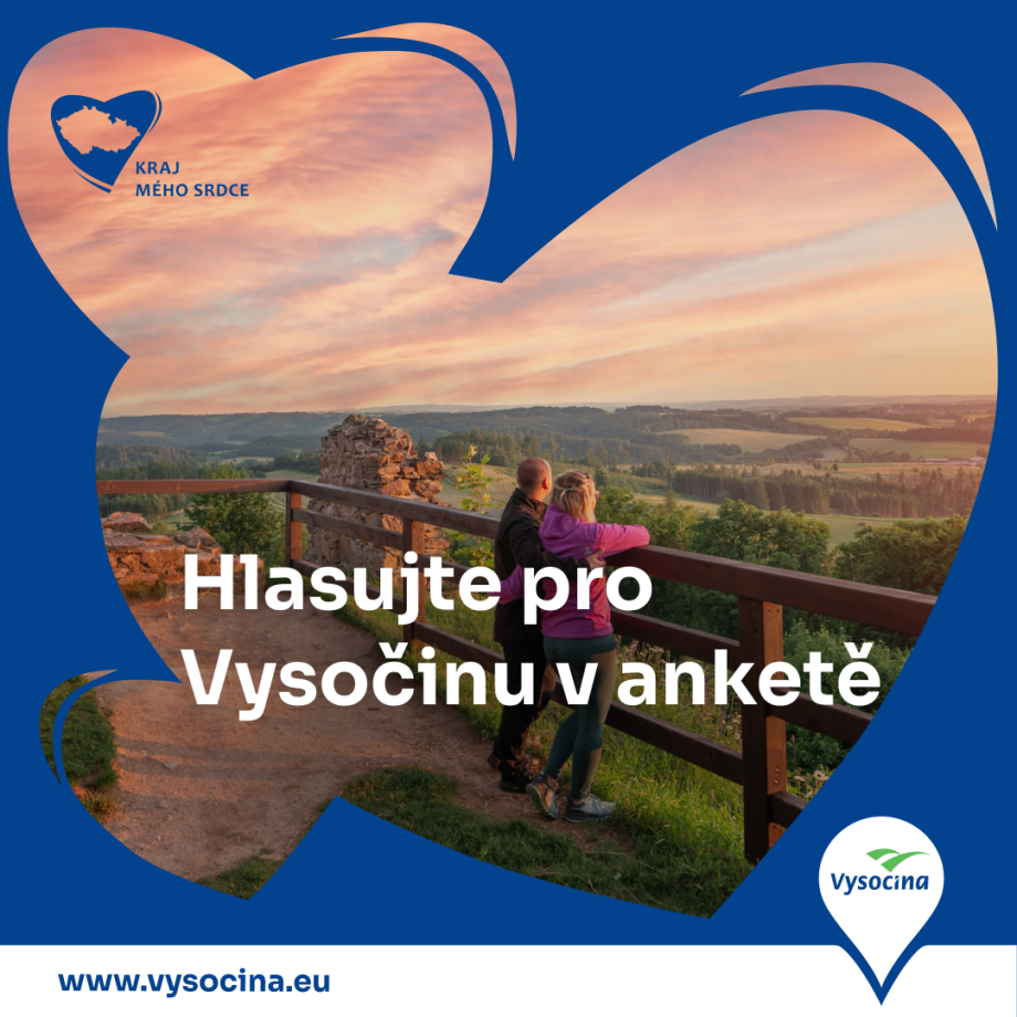 Podpořte Vysočinu v anketě Kraj mého srdce a dejte najevo, že právě tento kraj patří k těm, které stojí za to navštěvovat a mít rád.