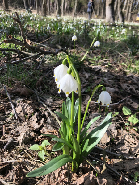 Leucojum Vernum neboli bledule jarní. Bílé zvonečkové kvítky se žlutými okraji symbolizující příchod jara.