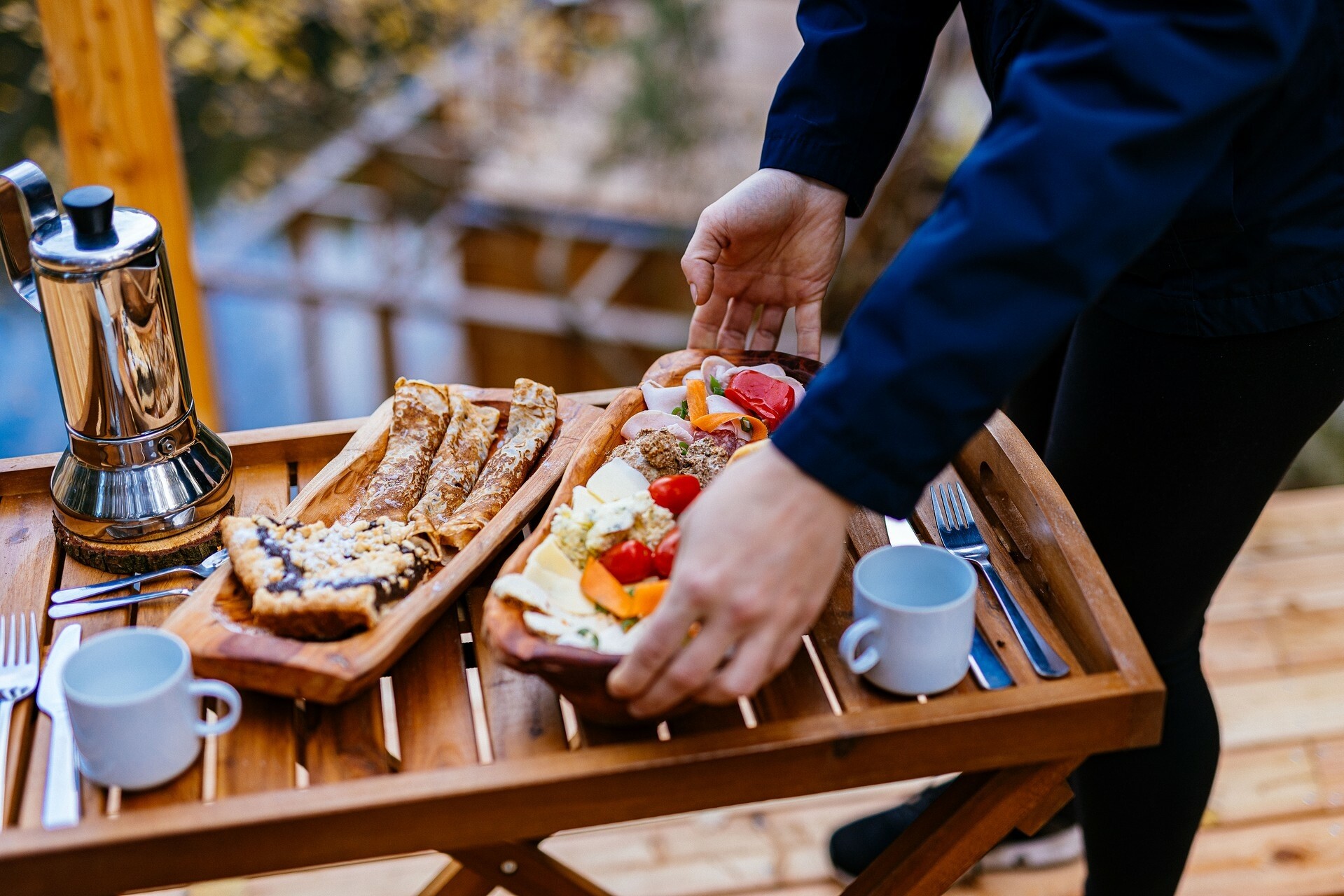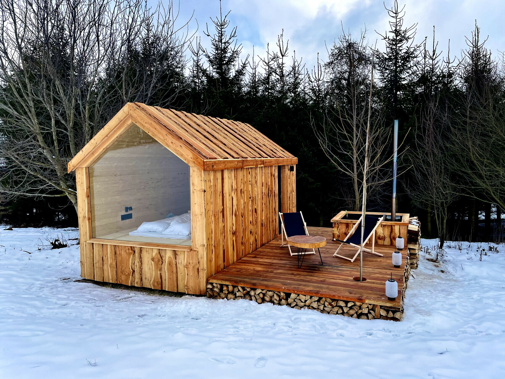 V Panském dvoře v Telči se můžete ubytovat buď v penzionu, nebo v jednom ze tří glampingových posedů. Atmosféru místa podtrhuje privátní venkovní sauna s výhledem na výběh s daňky, která dodává zimním večerům výjimečnou intimitu.