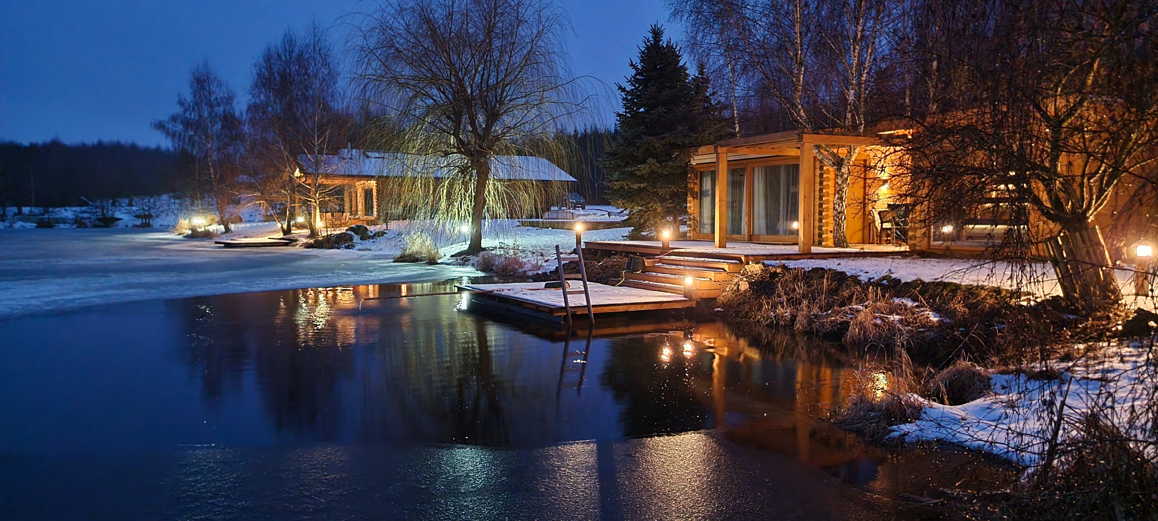 • Sauna mit der Möglichkeit, sich direkt im Teich in der Nähe des Ferienhauses abzukühlen