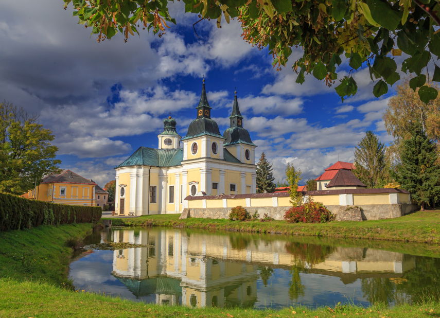 Die Kirche ist nicht nur eine Hommage an den Schutzpatronen des Landes, sondern auch an den Abt Vejmluva, der auf denselben Namen getauft wurde. Die Kuppel der Kirche, die mit einem Leuchter in Form einer Fürstenmütze verziert ist, spiegelt sich in der Oberfläche des Teiches und über dem Eingang der Kirche finden Sie das Symbol eines doppelten W, den Anfangsbuchstaben der Namen der beiden Schutzpatronen.