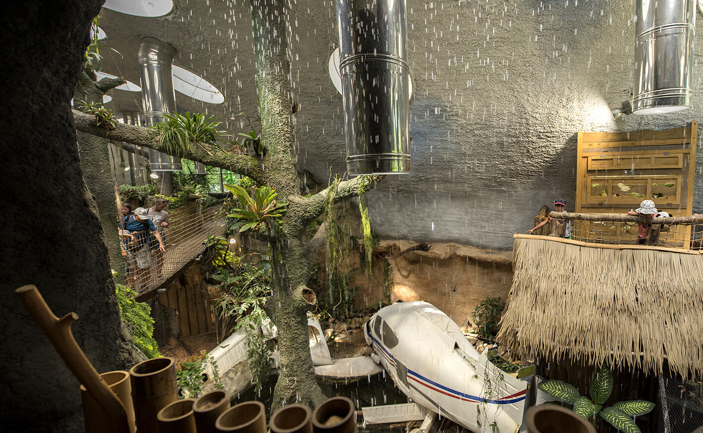 Visitors of all age categories will enjoy their visit. Demonstrations of birds of prey and owls, night tours, animal days, lectures and other narrations and guided tours are very popular. One great attraction is the tropical habitat with a river and a waterfall, pools with crocodiles, a crashed airplane and the largest snakes in the world, the great anacondas. The wolf habitat is also often visited. There is a wooden viewing platform from where you can see these animals from above.