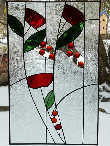 Stained glass, jewellery and artistic objects produced using the Tiffany technique.