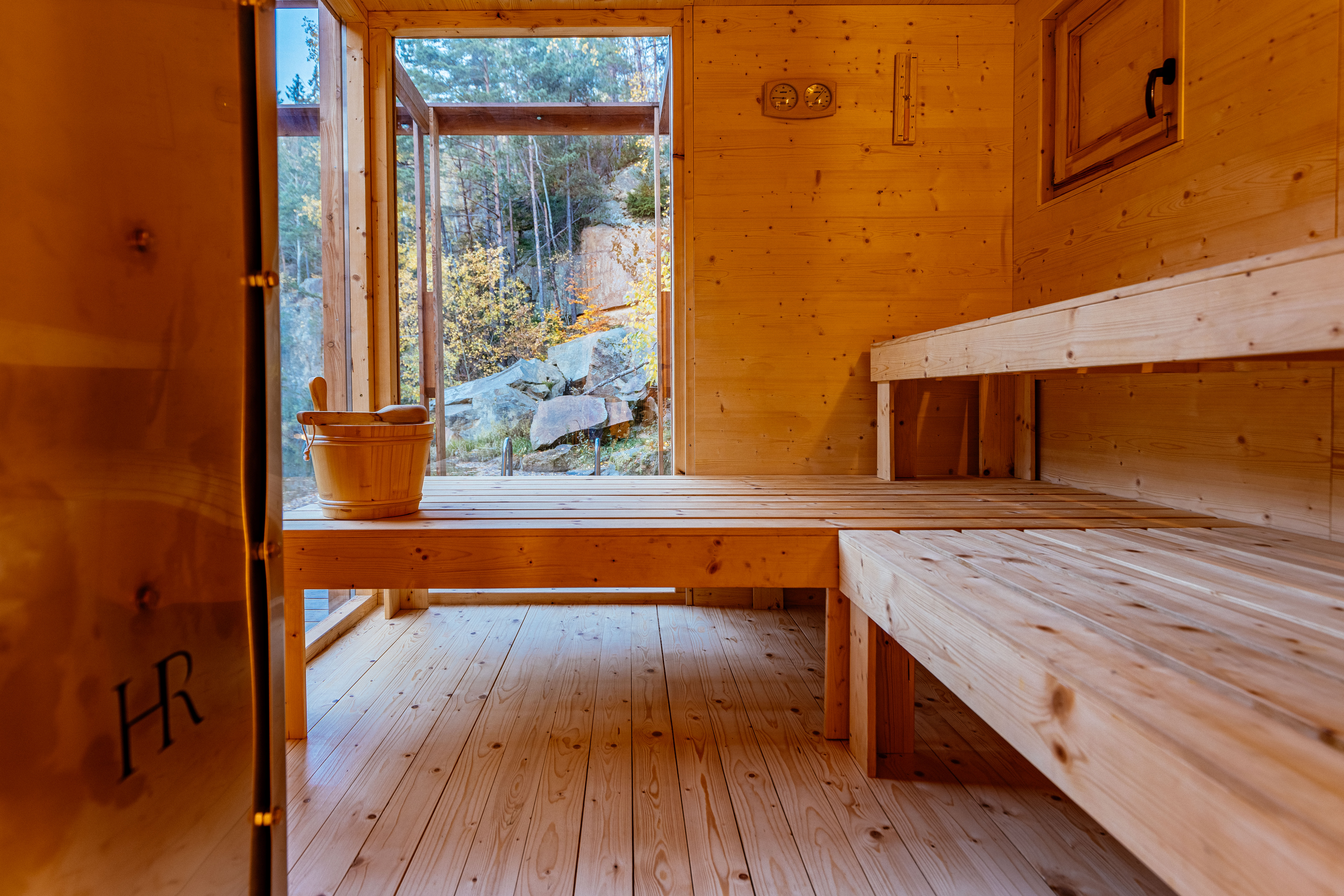 Hidden Retreat and that’s what it really is here. The name perfectly describes the character of the accommodation. In a cabin on the banks of a private quarry you will have a luxurious base in the middle of wild nature. The floating sauna and hot tub will warm up your body and calm your mind. At night you will see thousands of stars above you. Here you will find peace and quiet, privacy and luxury.