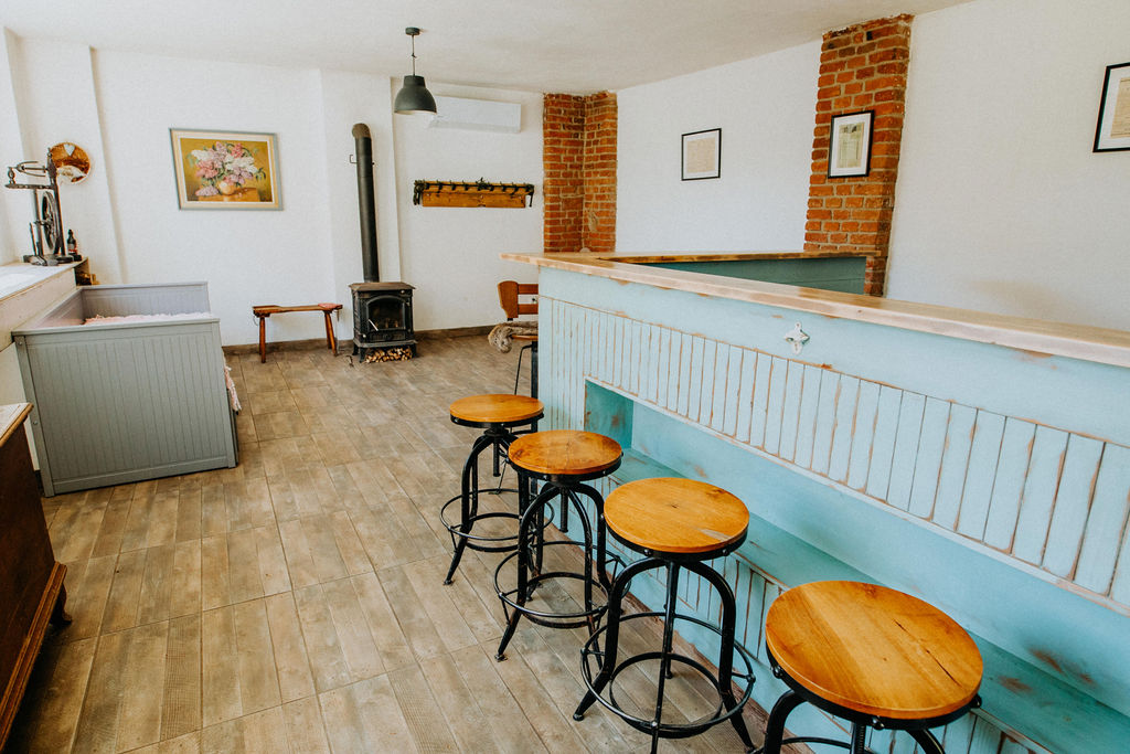 - In the barn, which is just 10 metres across the yard, you will find 4 beds, a bar with seating and a fully equipped kitchen (including oven and dishwasher). In the evening you can create a pleasant atmosphere and warm up by the fire.
