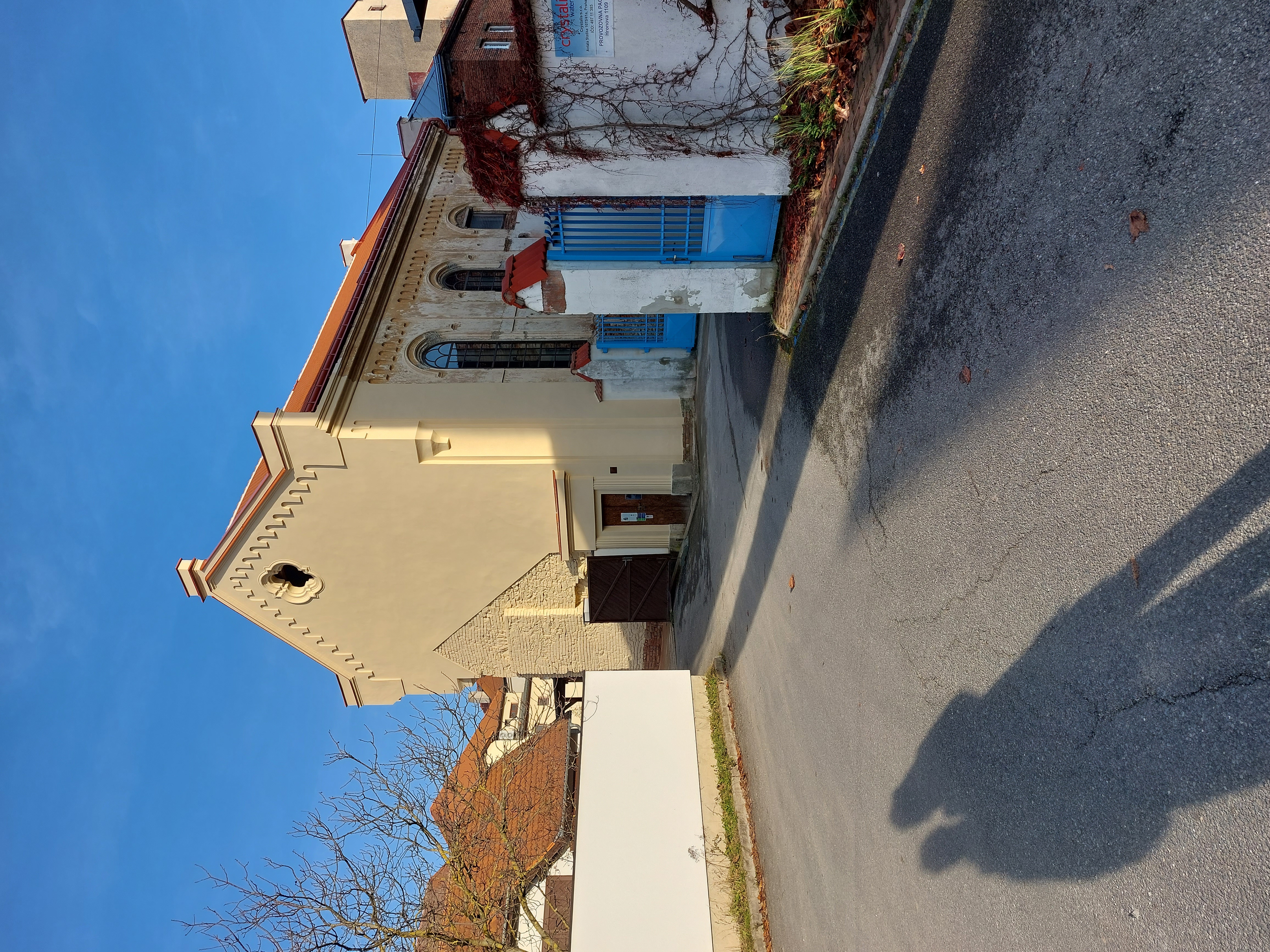The synagogue was built at the beginning of the 19th century in classicist style with pseudo-Romanesque elements. It stands inside a block of houses between Hronova Street and Náměstí Svobody Square.