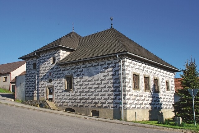 This will take you another 500 m to the crossroads, from which those want to can take the unmarked path to the highest peak of the massif, Smrček (674 m above sea level). You will return back to the crossroads and using the now unmarked forest road circling the mountain ridge from the west, head northwest towards the road to Radošov. Your wanderings through the forests end at the solitary hamlet of Cípy, and the next part of the trip will take you along the road into the open mountainous landscape. And the road will, it seems, alternate between ascents and descents all the more. You will see this immediately in the case of Radošov - you go down, and then you will go up again when you leave the village.