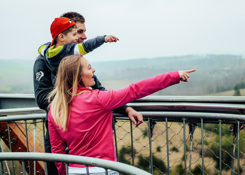 Z rozhledny, která je vysoká 26,5 metru. A víte, proč se kopec pod ní jmenuje Pekelný? Podle pověsti sv. Prokop, jemuž je zasvěcena bazilika v Třebíči, zkrotil ďábla a odhodil ho právě sem.