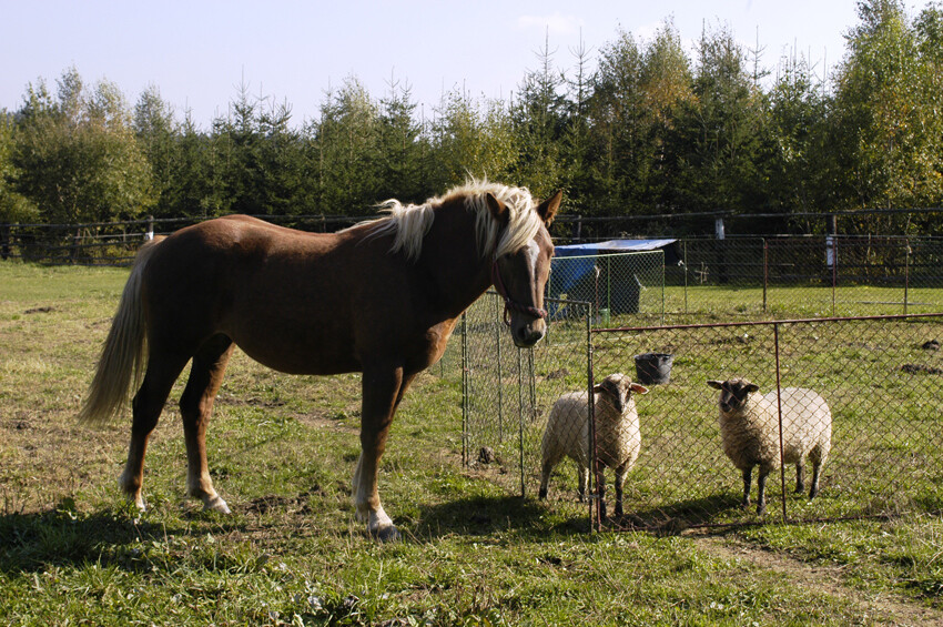 Koně mají k dispozici stáj se čtyřmi boxy a pastvinu obehnanou pletivem. Kruhová ohrada, sedlovna, plavení koní, přeprava koní, turistika s vozem, vyjížďky s klienty. V místě chladnokrevná klisen.
