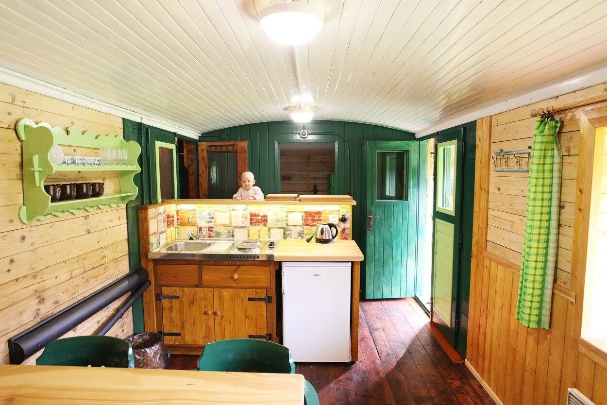 Ubytování v domku, který je zateplený slaměnými balíky, z čelní strany omítnut hliněnou omítkou, jinak je dřevěný.