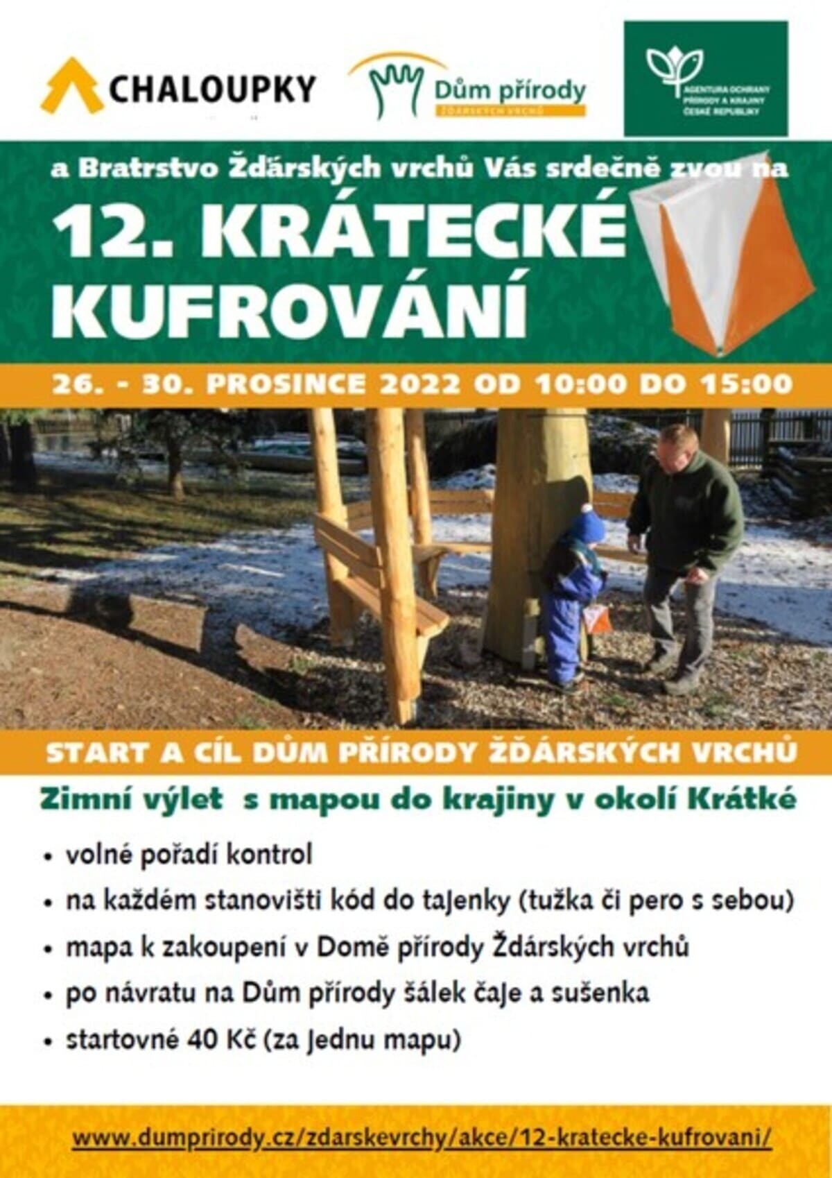 Již po dvanácté se můžete během 5 dní proběhnout či projít po krajině v samém srdci Žďárských vrchů s buzolou a mapou v ruce. Na každém stanovišti je část tajenky a je možno je luštit v libovolném pořadí. Nezapomeňte siv tedy tužku. Po návratu Vás bude čekat hrnek horkého, vonícího a lahodného bylinkového čaje z bylin sbíraných na lukách Žďárských vrchů a sušenka.