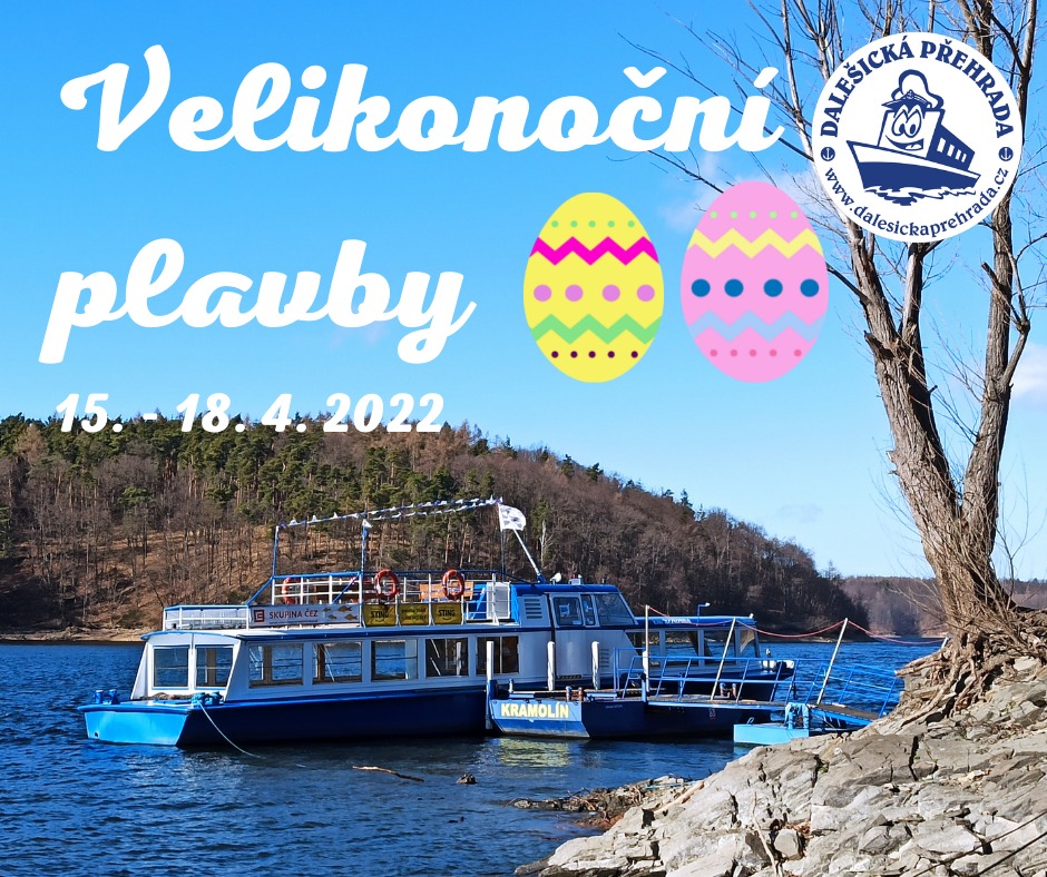 První jarní vyplutí v nové sezóně si můžete užít přes Velikonoční svátky od 15. do 18.04.2022. Více informací na https://www.dalesickaprehrada.cz/webkamery/zahajeni-jarni-sezony-velikonocni-plavby/