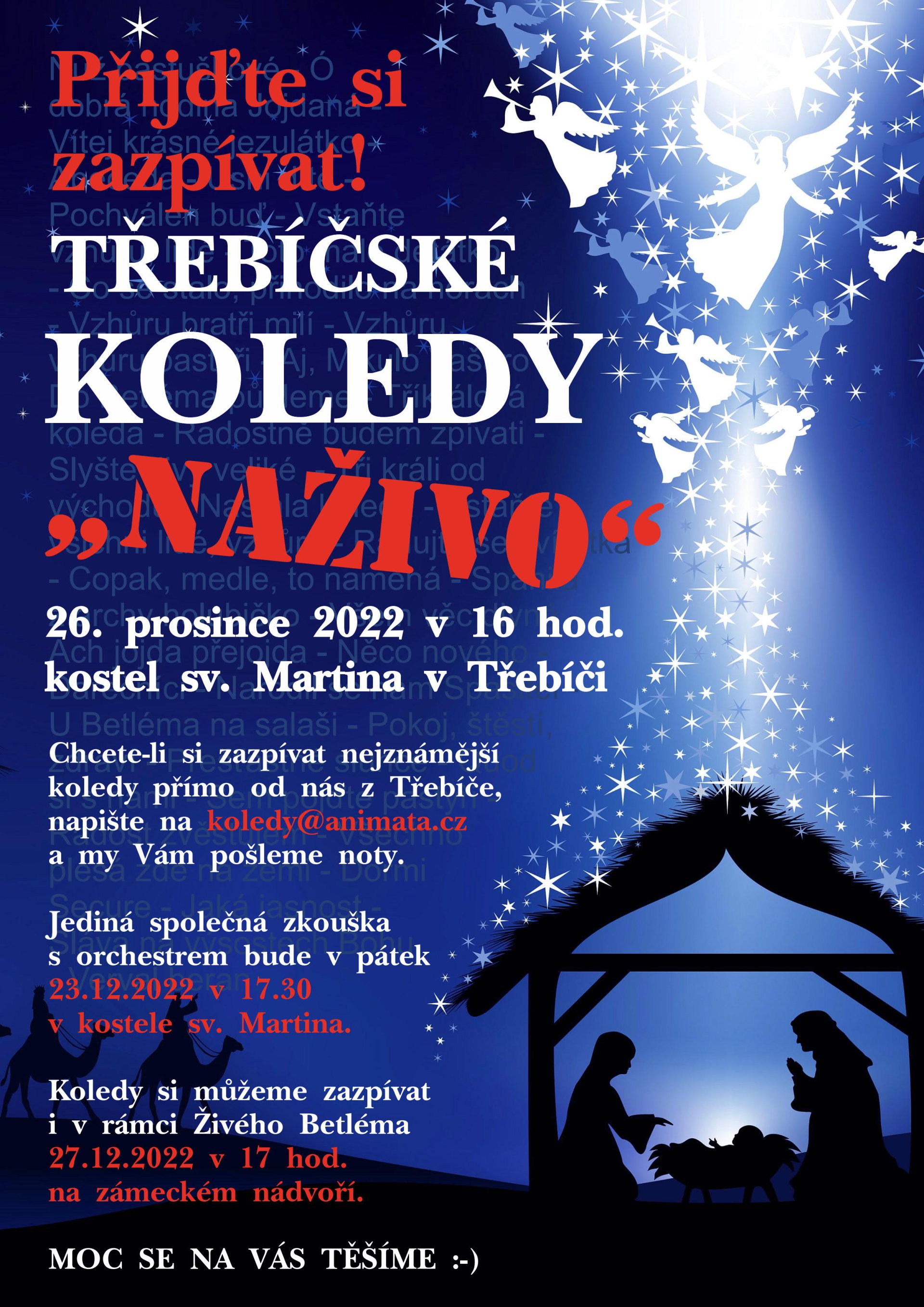 … nejen 26. prosince 2022 v 16 hod. (zkouška ve 14:50) v kostele sv. Martina v Třebíči, ale i v rámci Živého betlému 27. prosince 2022 v 17 hod. (zkouška v 15:30) na zámeckém nádvoří u baziliky sv. Prokopa.