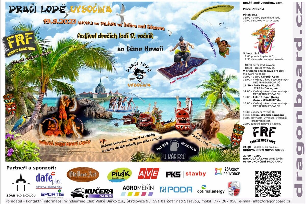 19.8.2023 se na Piláku ve Žďáru nad Sázavou koná festival dračích lodí 17. ročník na téma Hawaii