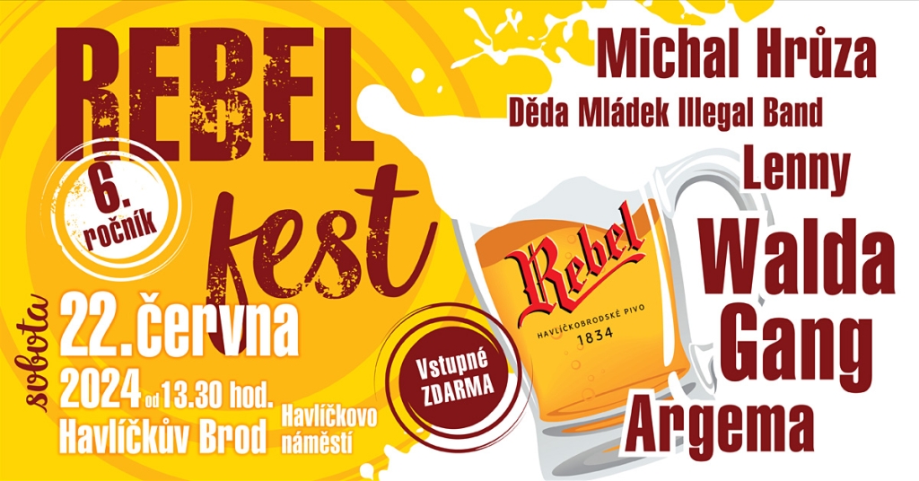 V sobotu 22. června se koná 6. ročník slavností havlíčkobrodského pivovaru Rebel. Přijďte se pobavit a oslavit výročí 190 let od založení pivovaru. Festival plný hudby, zábavy a hlavně – výborného piva!