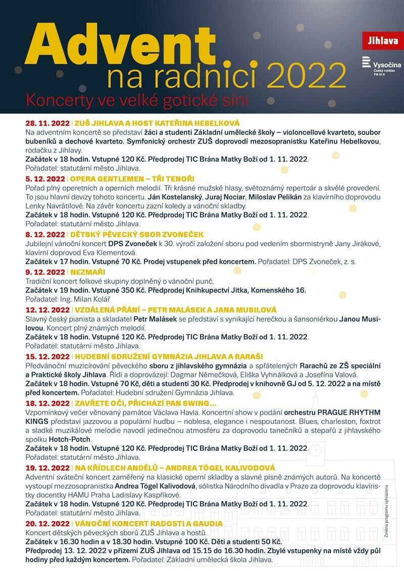 Zastavme se na chvíli a užijme si atmosféru předvánočních koncertů v jihlavské radnici.
