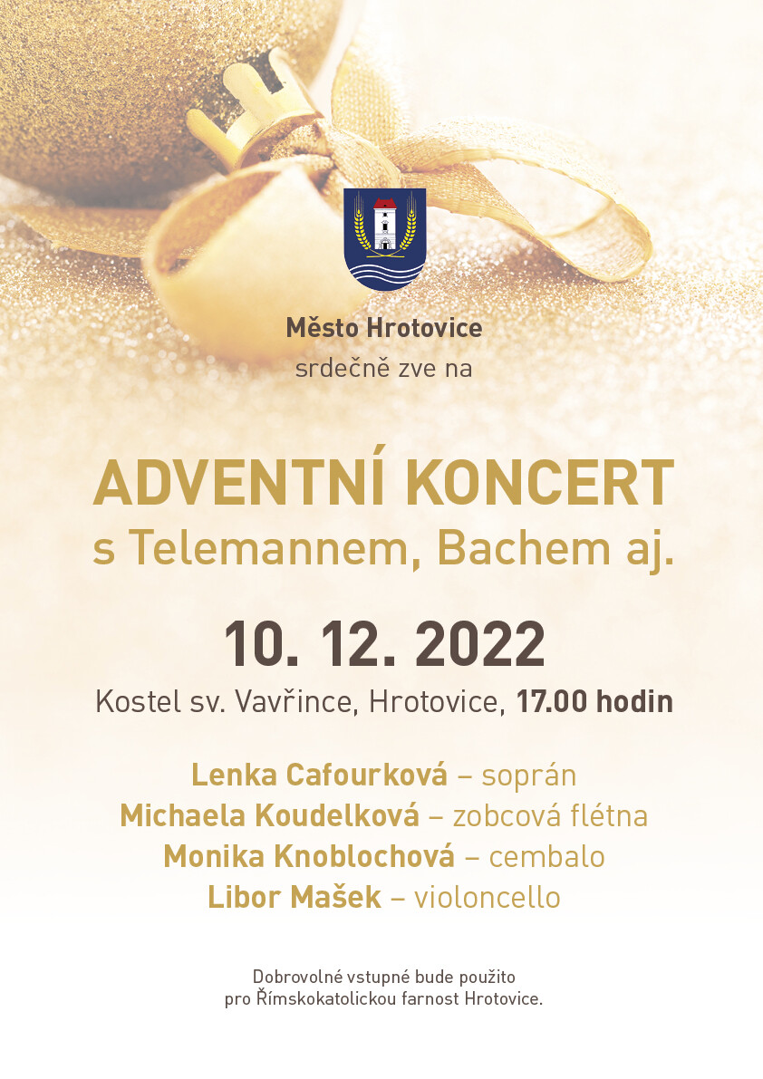 Zveme Vás na Adventní koncert s Telemannem, Bachem aj. Koncert se koná dne 10.12.2022 od 17 hodin v kostele svatého Vavřince v Hrotovicích.