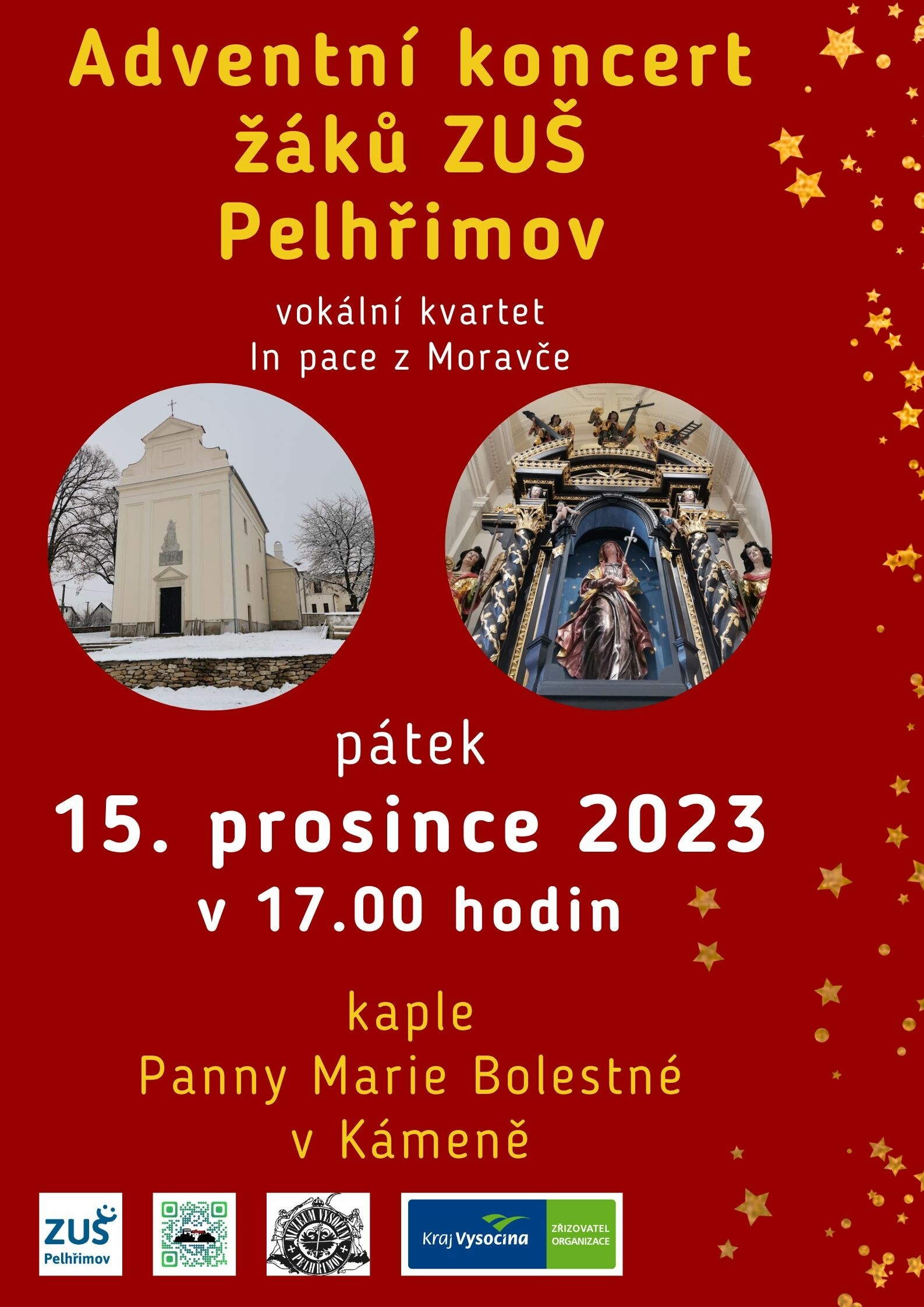 Muzeum Vysočiny Pelhřimov, p. o. všechny srdečně zve na adventní koncert, který se uskuteční v pátek 15. prosince od 17.00 hodin v kapli Panny Marie Bolestné v Kámeně.