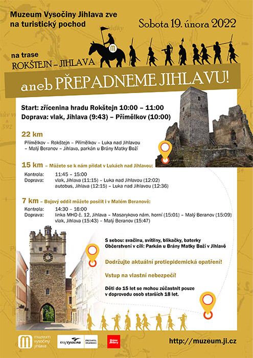Muzeum Vysočiny Jihlava připravuje na sobotu 19. února netradiční akci – jedná se o turistický pochod na trase Rokštejn – Jihlava aneb Přepadneme Jihlavu.