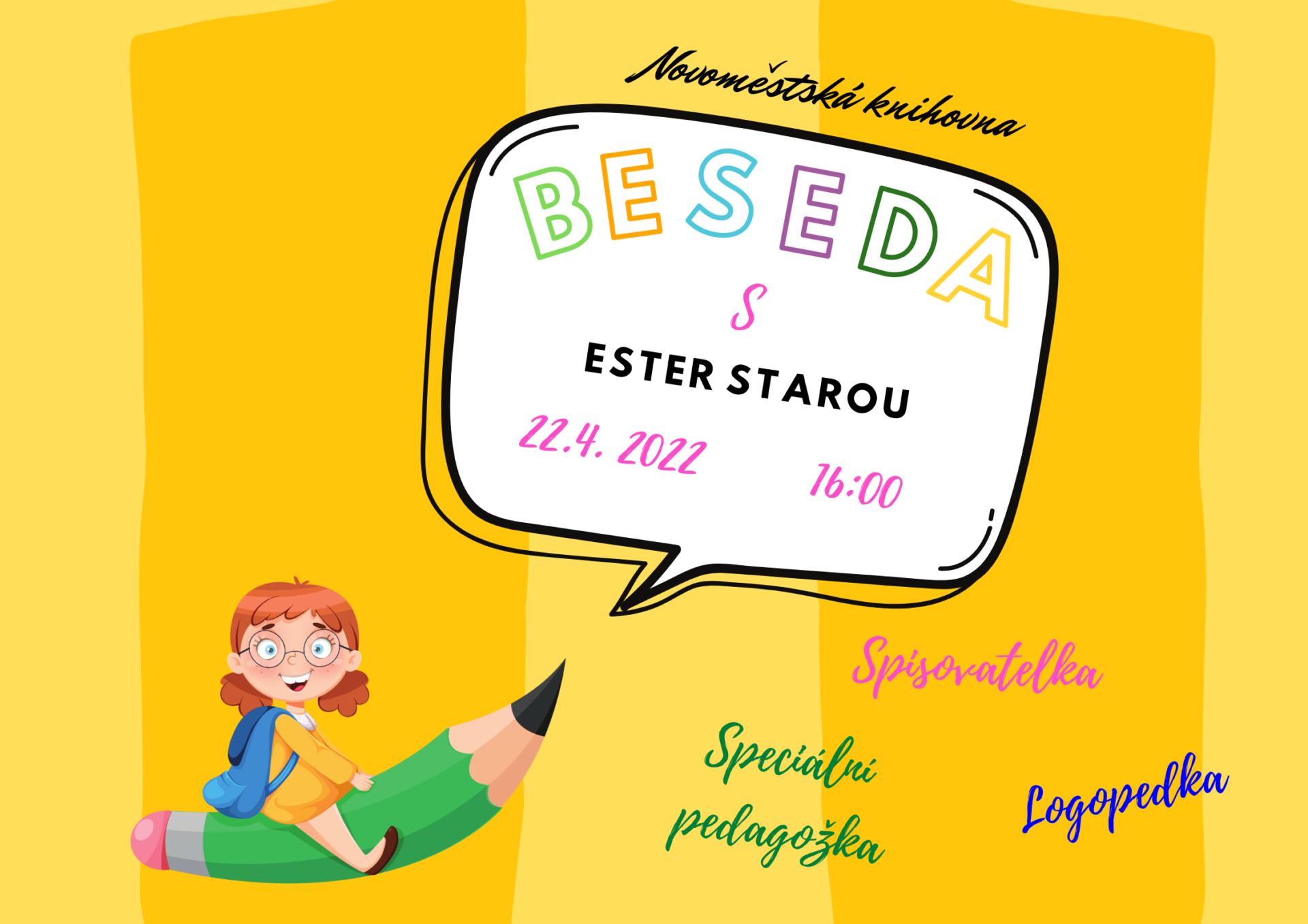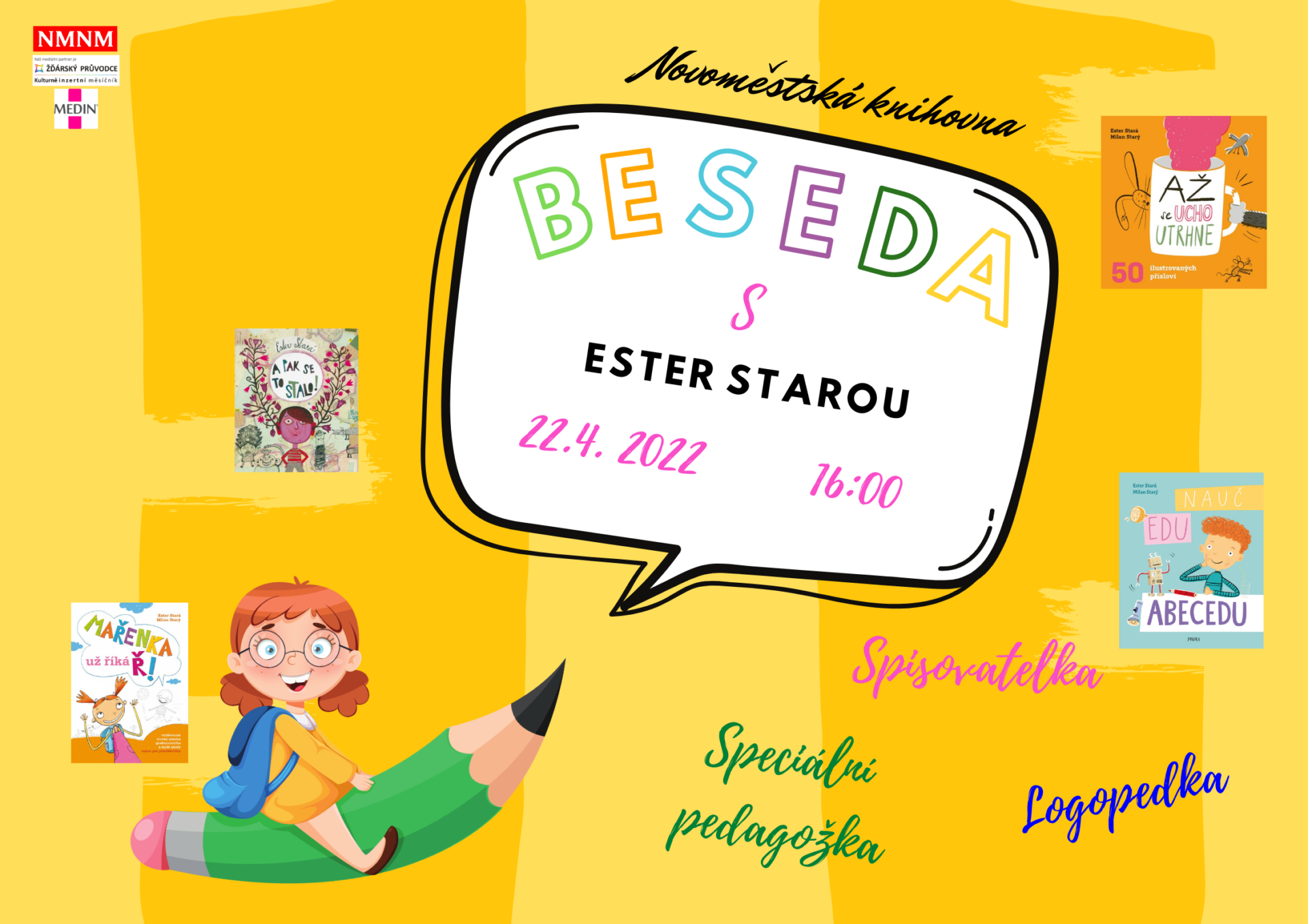 V pátek 22. dubna v 16.00 hodin se můžete s Ester Starou setkat osobně v novoměstské knihovně.