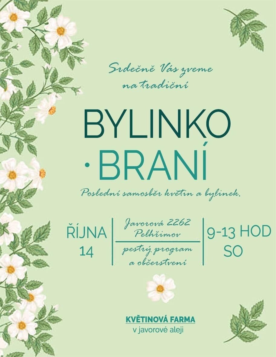 Srdečně Vás zveme na tradiční BYLINKOBRANÍ u nás na Květinové farmě v javorové aleji.