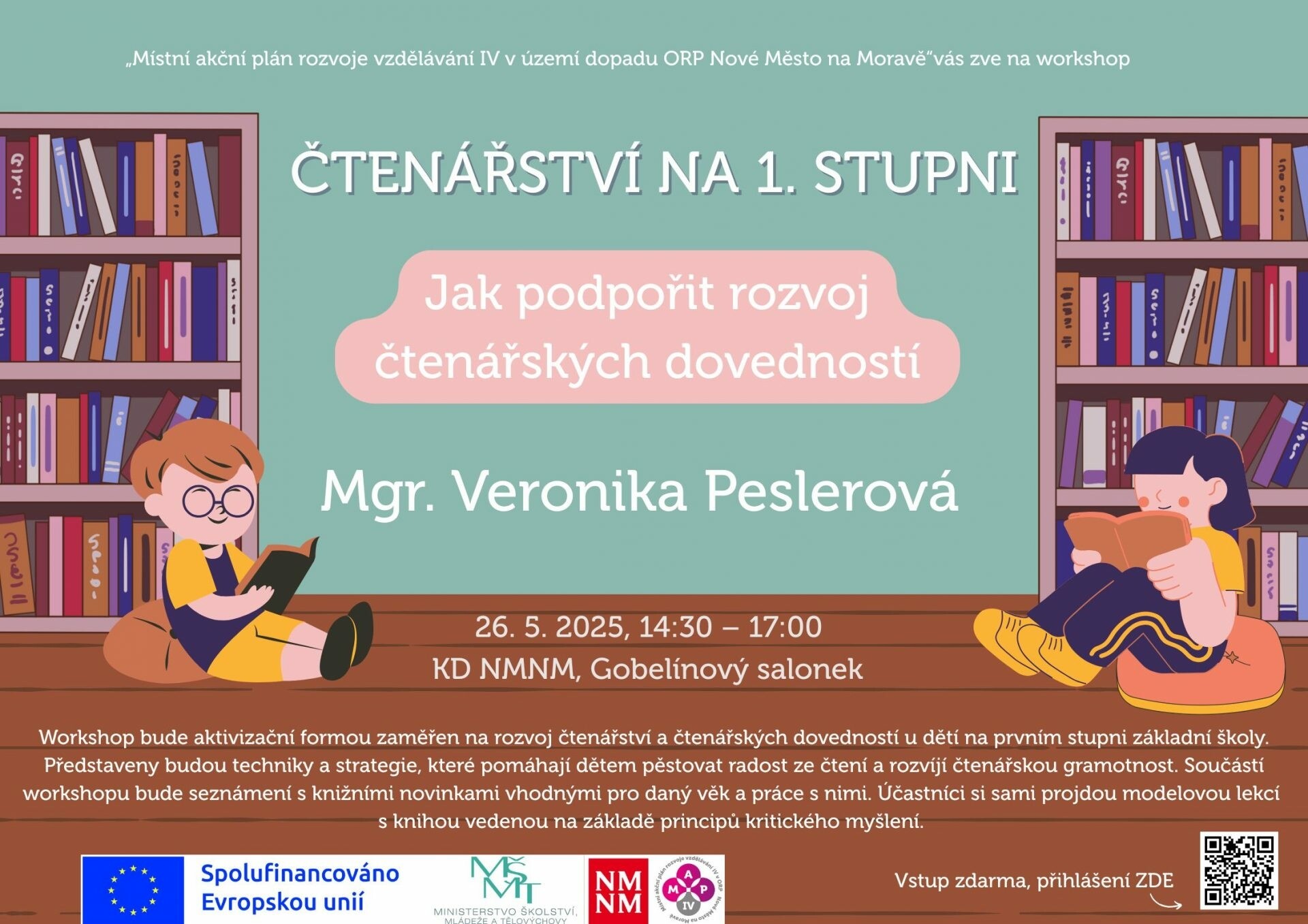 Workshop bude aktivizační formou zaměřen na rozvoj čtenářství a čtenářských dovedností u dětí na prvním stupni základní školy. Představeny budou techniky a strategie, které pomáhají dětem pěstovat radost ze čtení a rozvíjí čtenářskou gramotnost. Součástí workshopu bude seznámení s knižními novinkami vhodnými pro daný věk a práce s nimi. Účastníci...