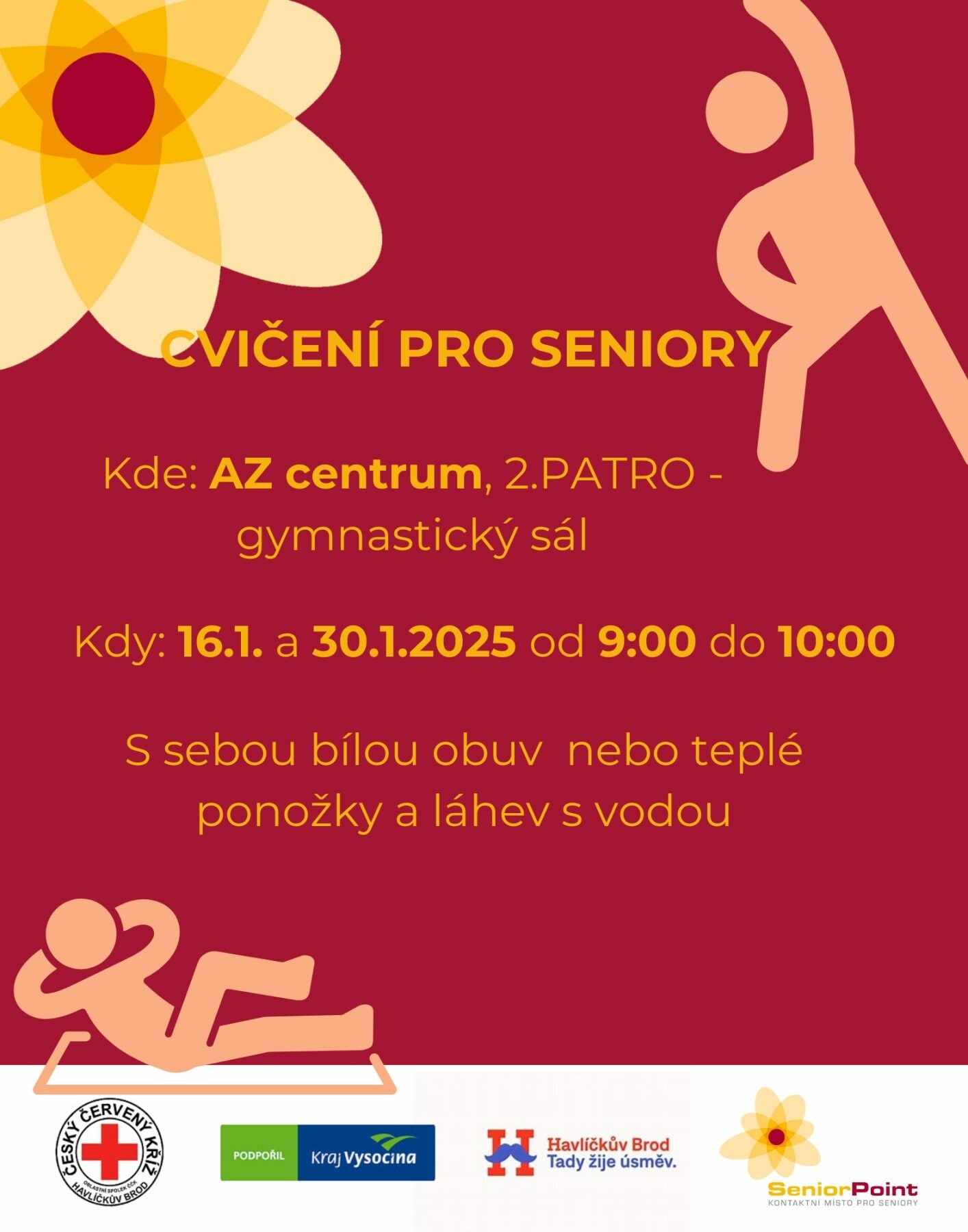 Zveme všechny seniory na pravidelné cvičení zaměřené na zdraví, pohyblivost a dobrou náladu.