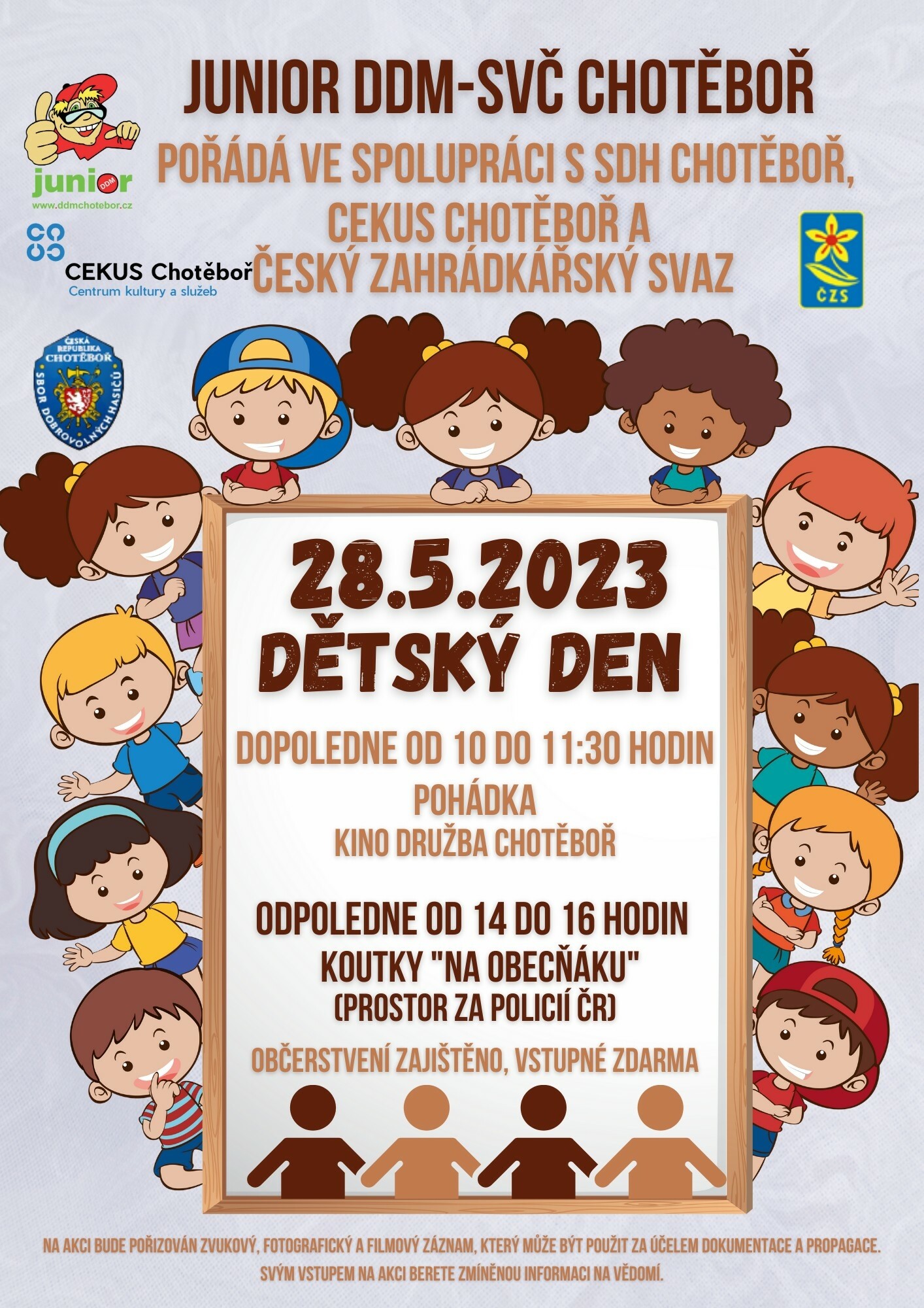JUNIOR DDM-SVČ Chotěboř pořádá ve spolupráci s SDH Chotěboř, CEKUS Chotěboř a Český zahrádkářský svaz Dětský den.