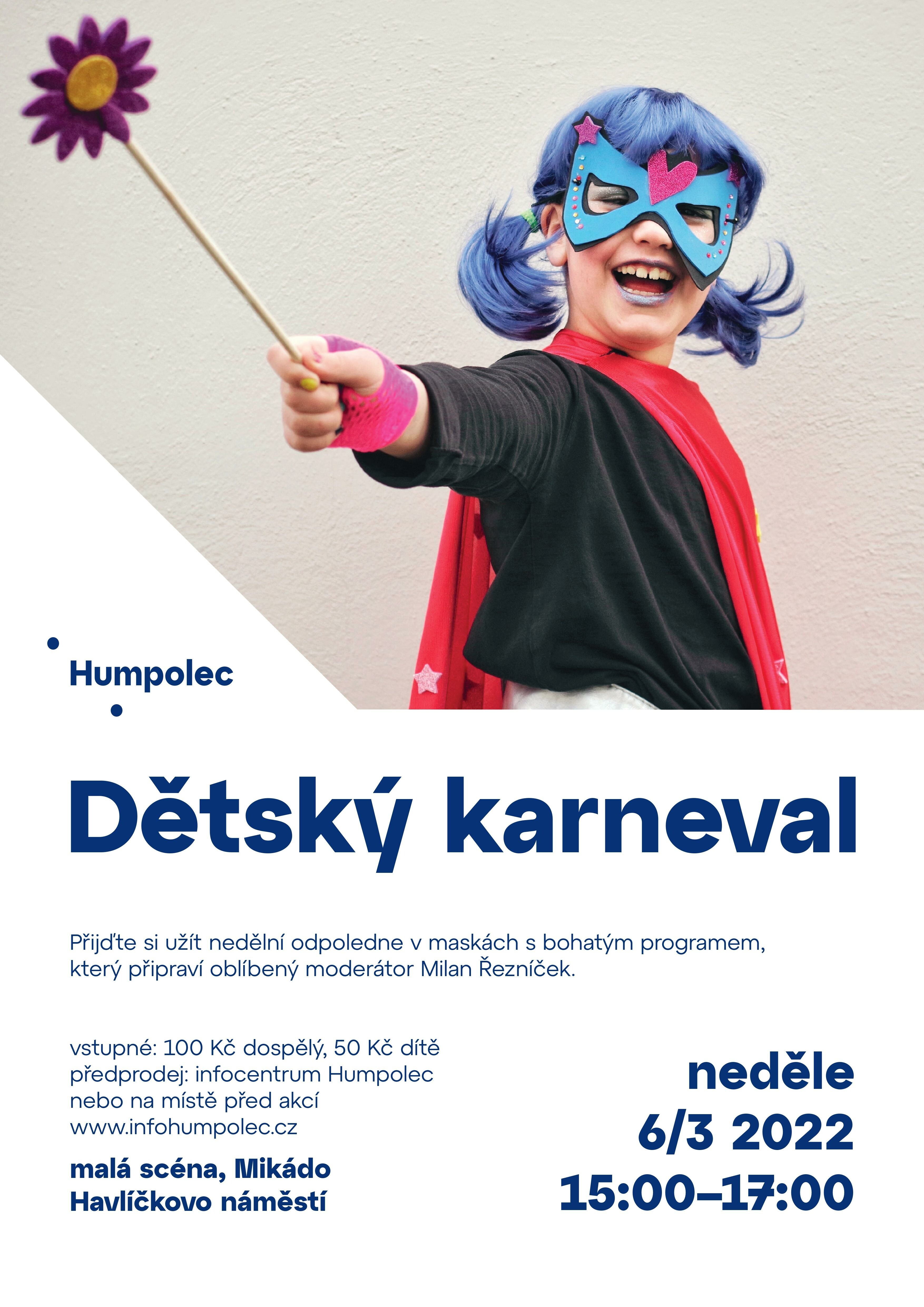 MěKIS Humpolec Vás zve na dětský karneval. Přijďte si užít nedělní odpoledne v masce. Těšit se můžete na bohatý taneční a soutěžní program, který si pro Vás připravil oblíbený moderátor Milan Řezníček.