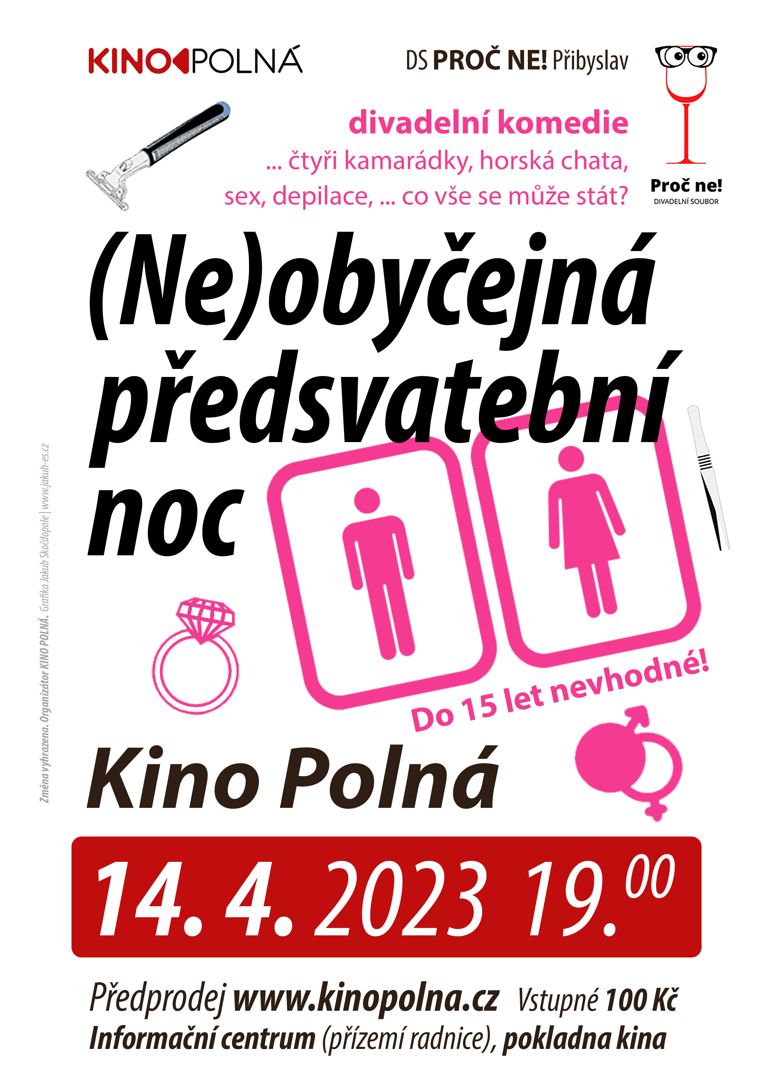 Přibyslavský divadelní soubor PROČ NE! přiveze komedii o čtyřech kamarádkách, které se sejdou na horské chatě u jedné z nich. To, co zpočátku vypadá jako klasická dámská jízda plná řečí o mužích, sexu a depilaci se záhy, po odkrytí jednoho tajemství, změní ve skutečně neobyčejnou předsvatební noc.