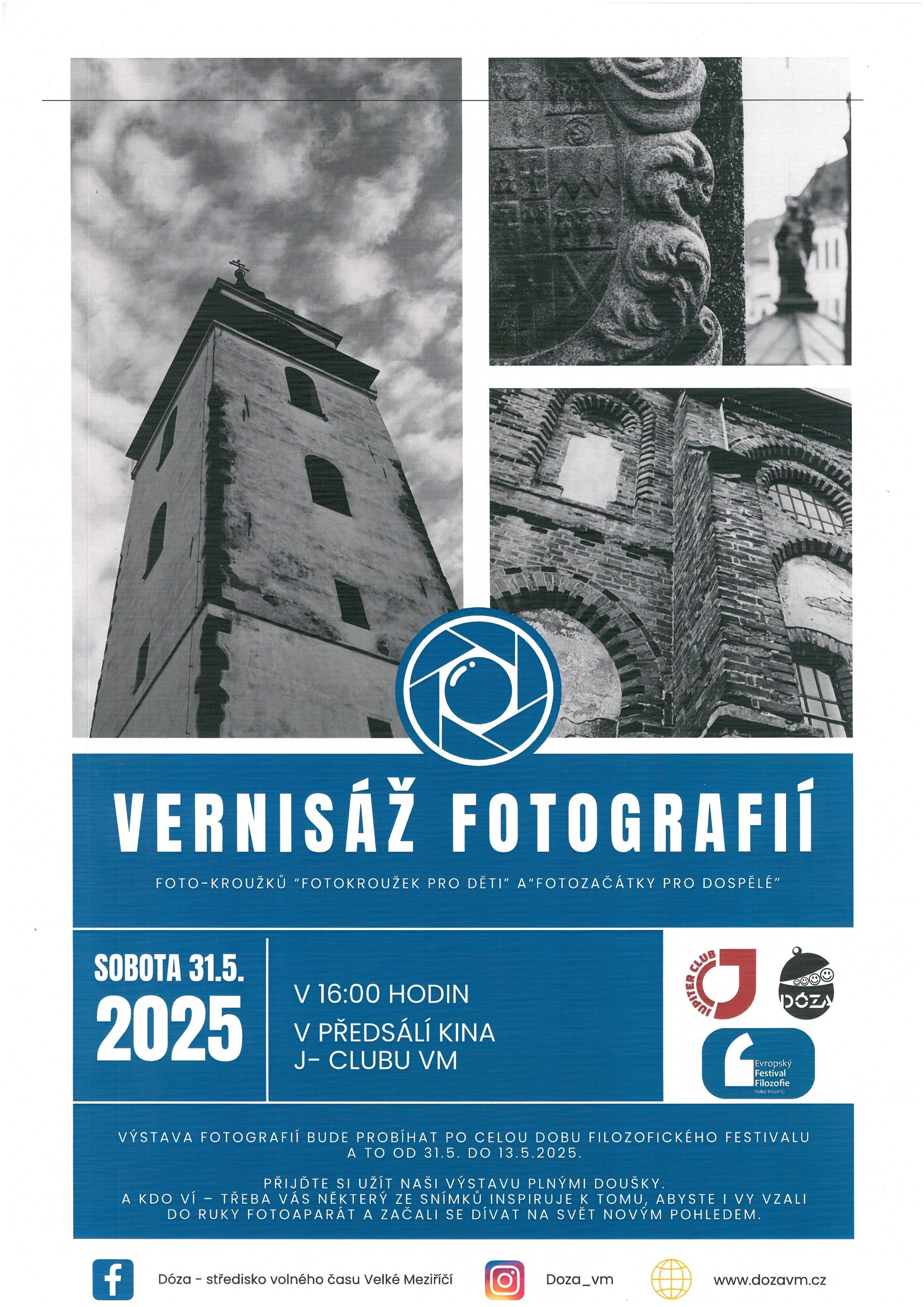 Vernisáž výstavy, fotografové Kristýna Čiháková, Ondřej Drdla a Anna Klímová pod vedením lektora Naniho z fotokroužku Dóza. Výstava je součástí 19. ročníku Evropského festivalu filozofie. Otevřeno: po - čt 8 - 12, 12.30 - 16 hodin, pá 8 - 12, 12.30 - 14 hodin.