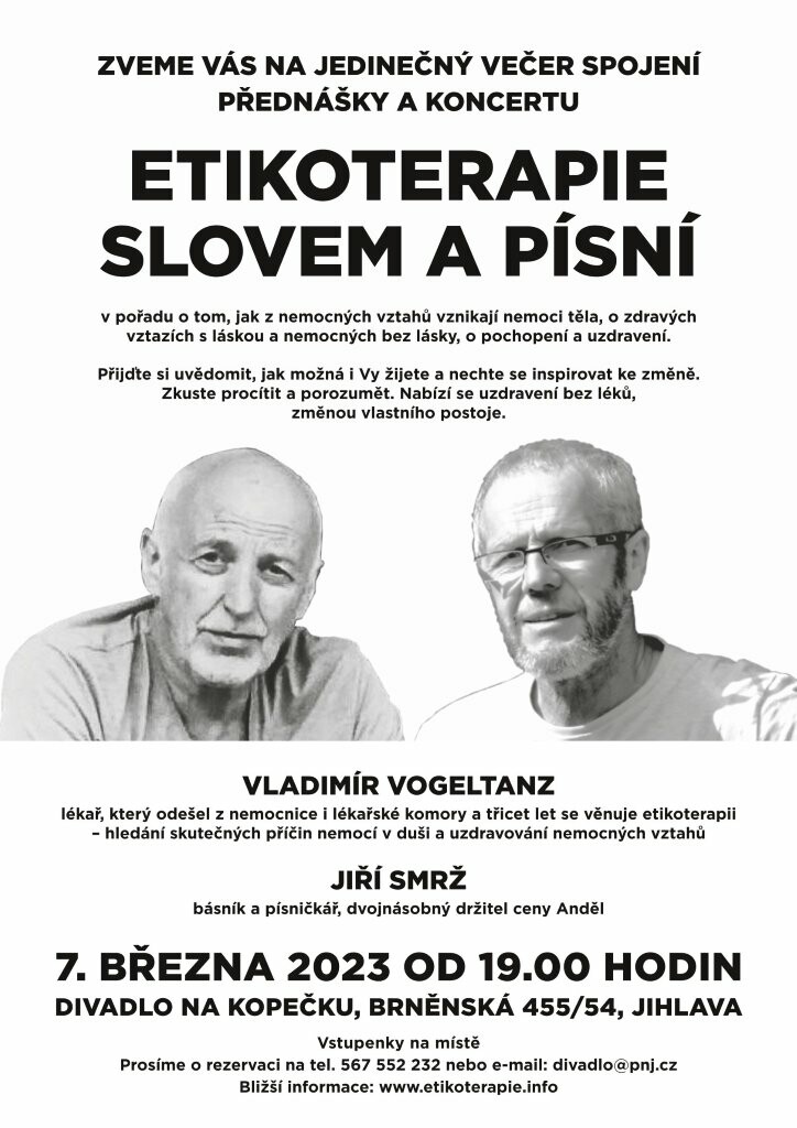 Spojení přednášky a koncertu do pořadu o tom, jak z nemocných vztahů vznikají nemoci těla, o zdravých vztazích s láskou a nemocných bez lásky, o pochopení a uzdravení.