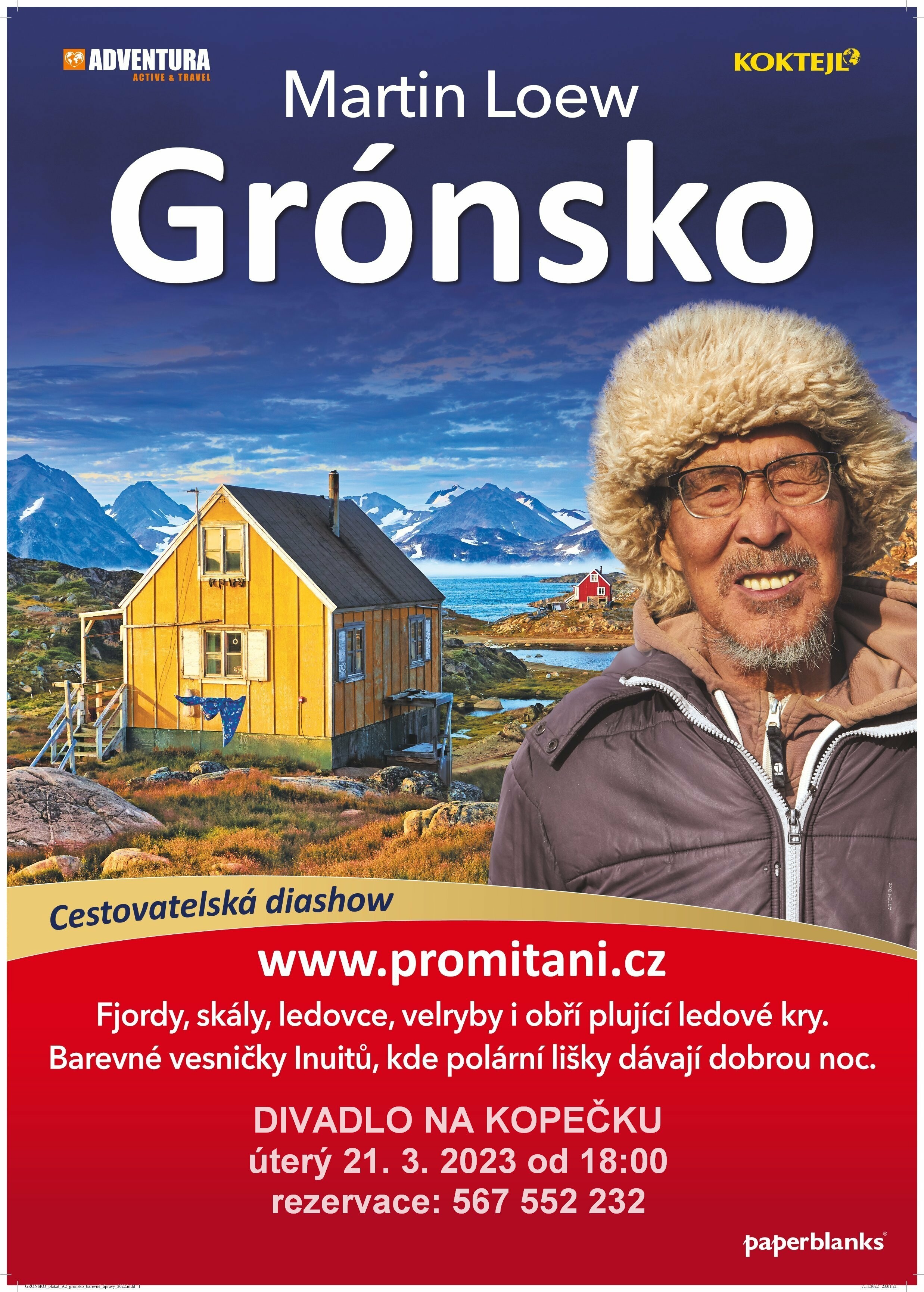 Diashow "Grónsko - země hor a ledu" uvádí cestovatel Martin Loew. Multimediální projekce s živým vyprávěním: Poutavý příběh dobrodružné cesty plný úžasných fotografií i nevšedních zážitků.