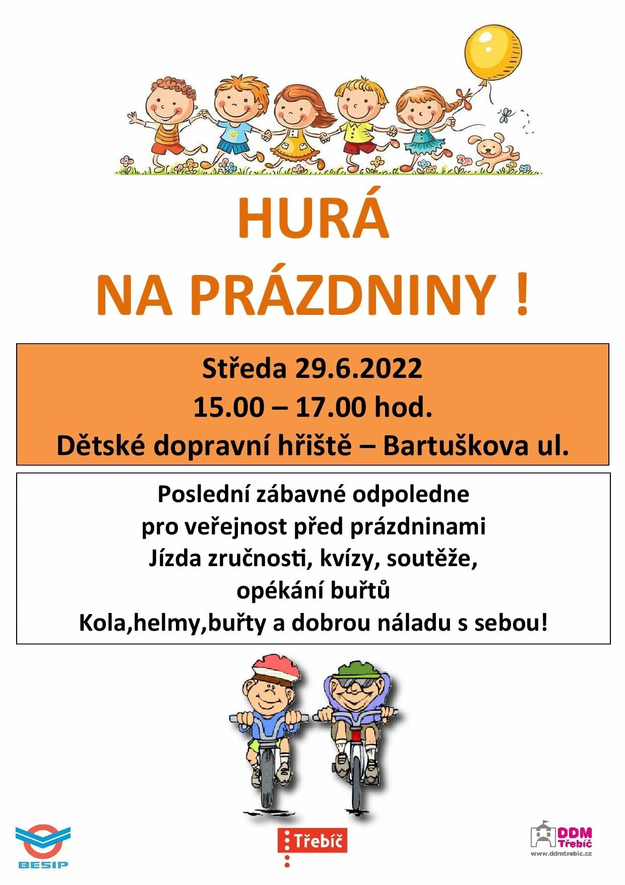 Poslední zábavné odpoledne pro veřejnost před prázdninami. Zkuste si jízdu zručnosti, kvízy, soutěže a zakončete to opékáním buřtů.