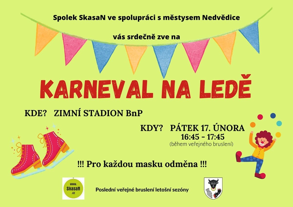 Spolek SkasaN ve spolupráci s mestysem Nedvědice vás srdečně zve na karneval na ledě.