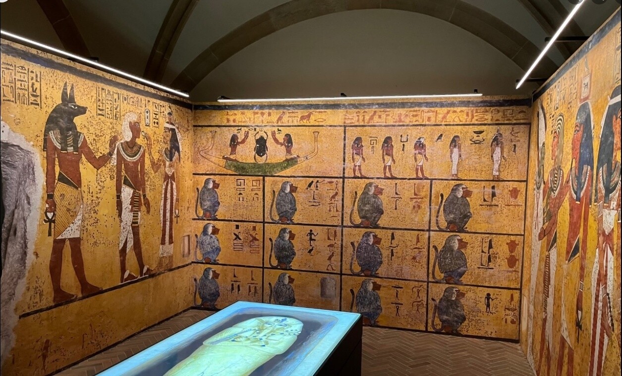 Těšit se můžete na svítící kopii Rosettské desky, seznámíte se s vývojem egyptského písma i s postupem, kterým ho Champollion rozluštil, vstoupíte do makety Tutanchamonovy pohřební komory, proniknete do tajů mumifikace.