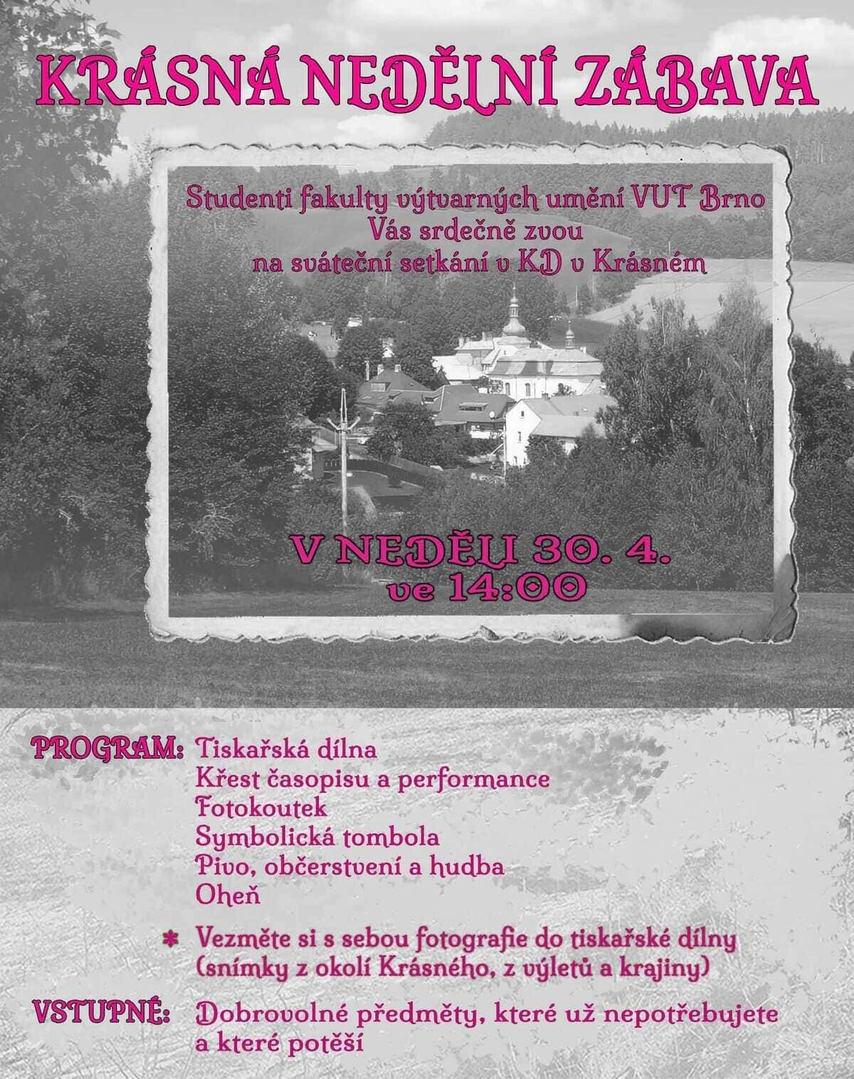 Studenti fakulty výtvarných umění VUT Brno Vás srdečně zvou na sváteční setkání v KD v Krásném.