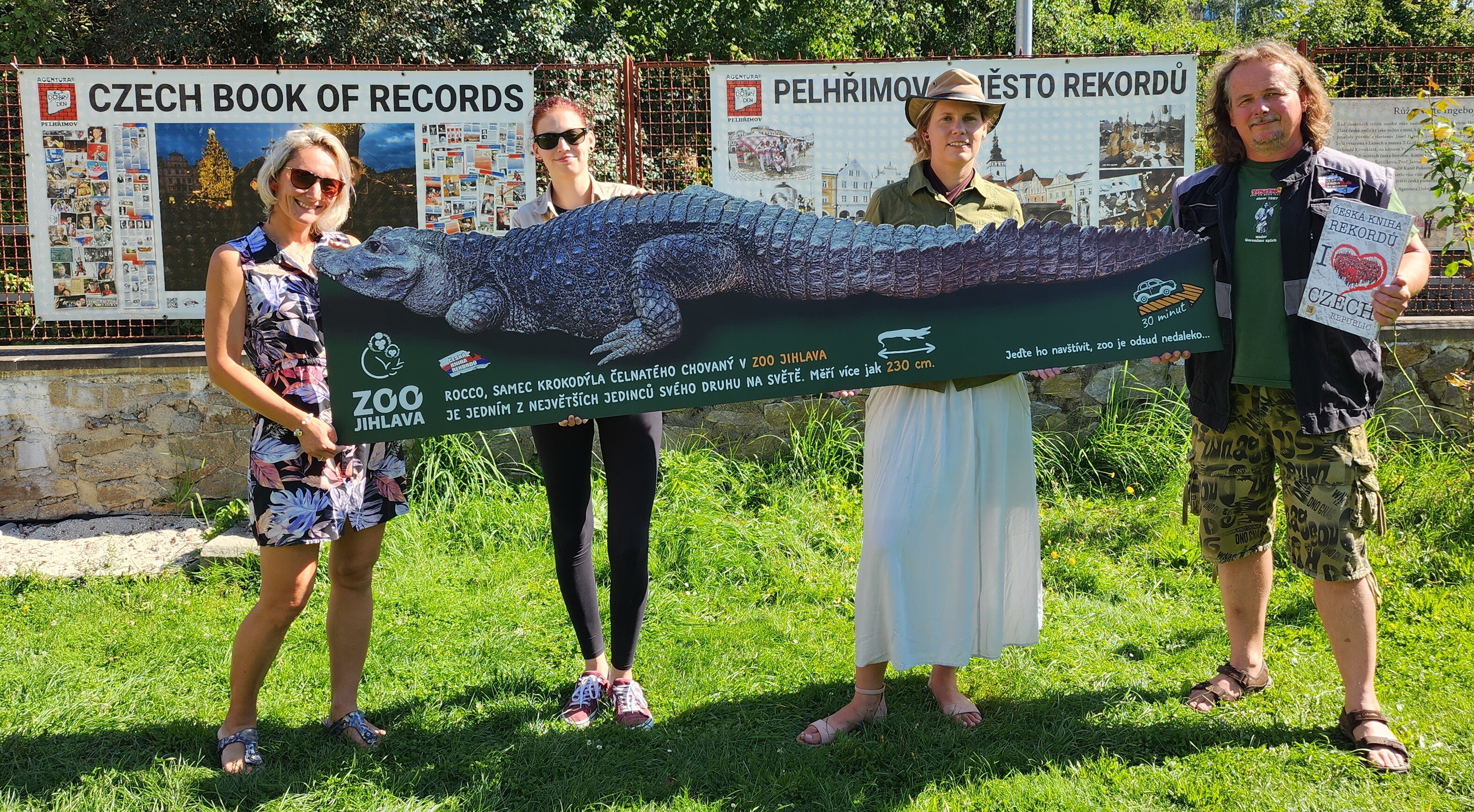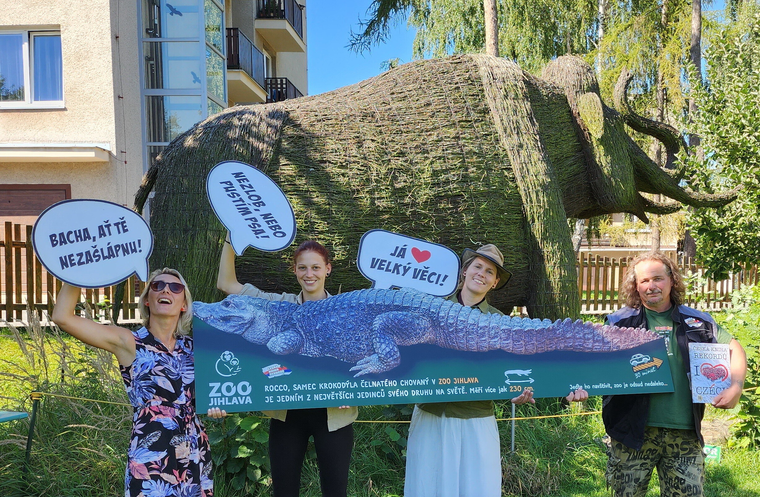 Přivezli nám jej ze Zoo Jihlava a měří 230 centimetrů. Samci druhu krokodýl čelnatý přitom v průměru dosahují délky kolem 160 cm, samice ještě méně. ROCCO, jak se jihlavský obr jmenuje, tedy patří k největším jedincům svého druhu na světě a my jsme jej po zásluze zapsali do České knihy rekordů. Šikovným dámám ze zoo se ho po několikaměsíčním snažení podařilo vyfotit „v natažené poloze" a vyrobit jeho podobiznu v životní velikosti. Společně jsme ji pak umístili na zahradu expozice Zlaté české ručičky do Pelhřimova, kde se s ní můžete přijít vyfotografovat. V Muzeu rekordů i Zoo Jihlava máme otevřeno každý den a těšíme se na vás! www.muzeumrekordu.cz