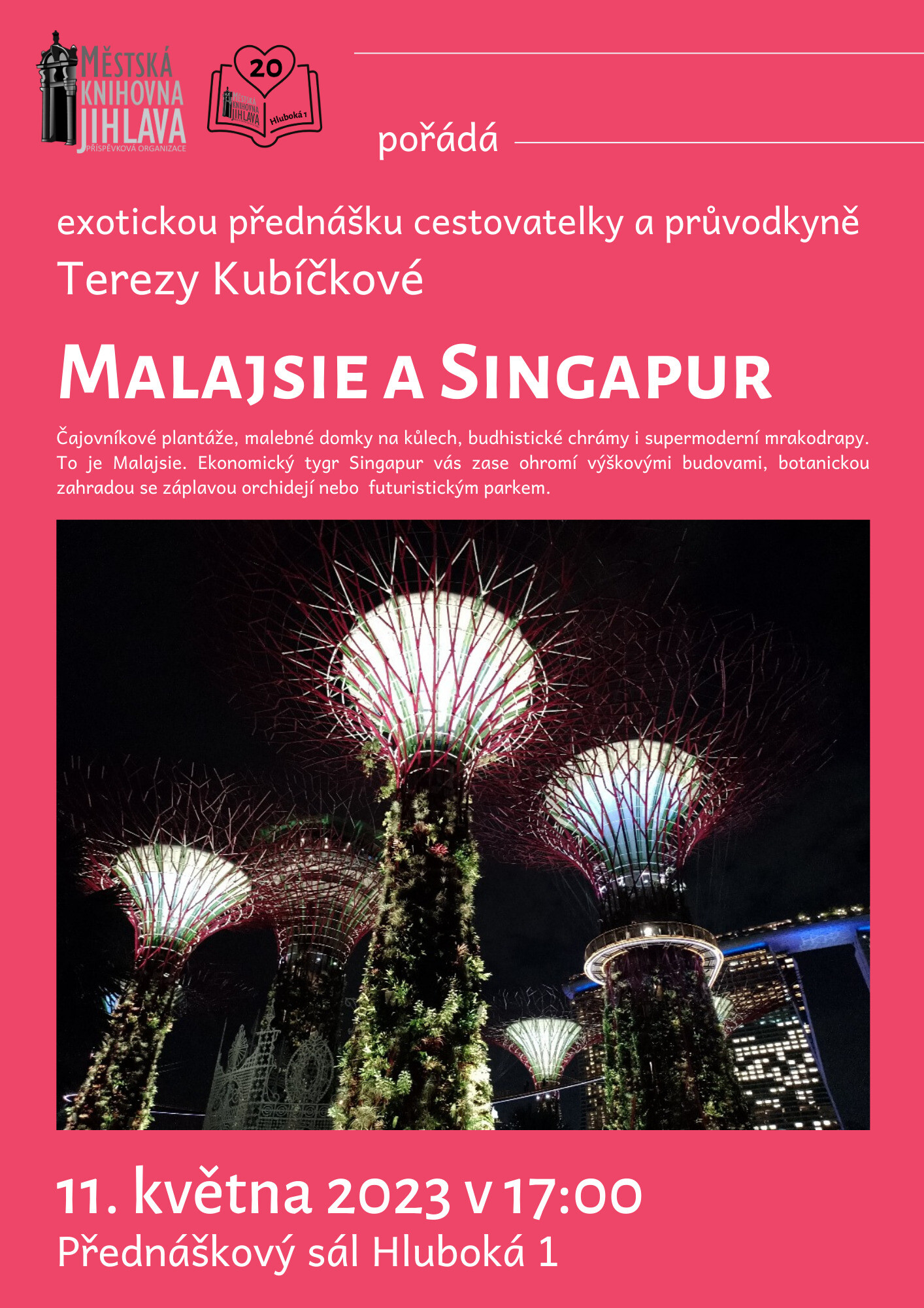 Ekonomický tygr Singapur vás zase ohromí výškovými budovami, botanickou zahradou se záplavou orchidejí nebo futuristickým parkem. Zveme vás na exotickou přednášku cestovatelky a průvodkyně Terezy Kubíčkové.