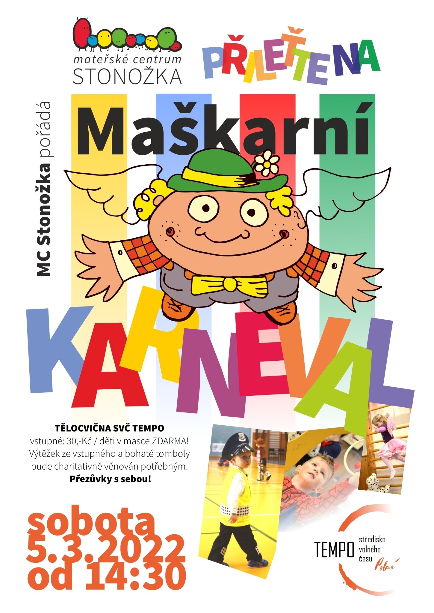 MC Stonožka pořádá v tělocvičně SVČ TEMPO Maškarní karneval.