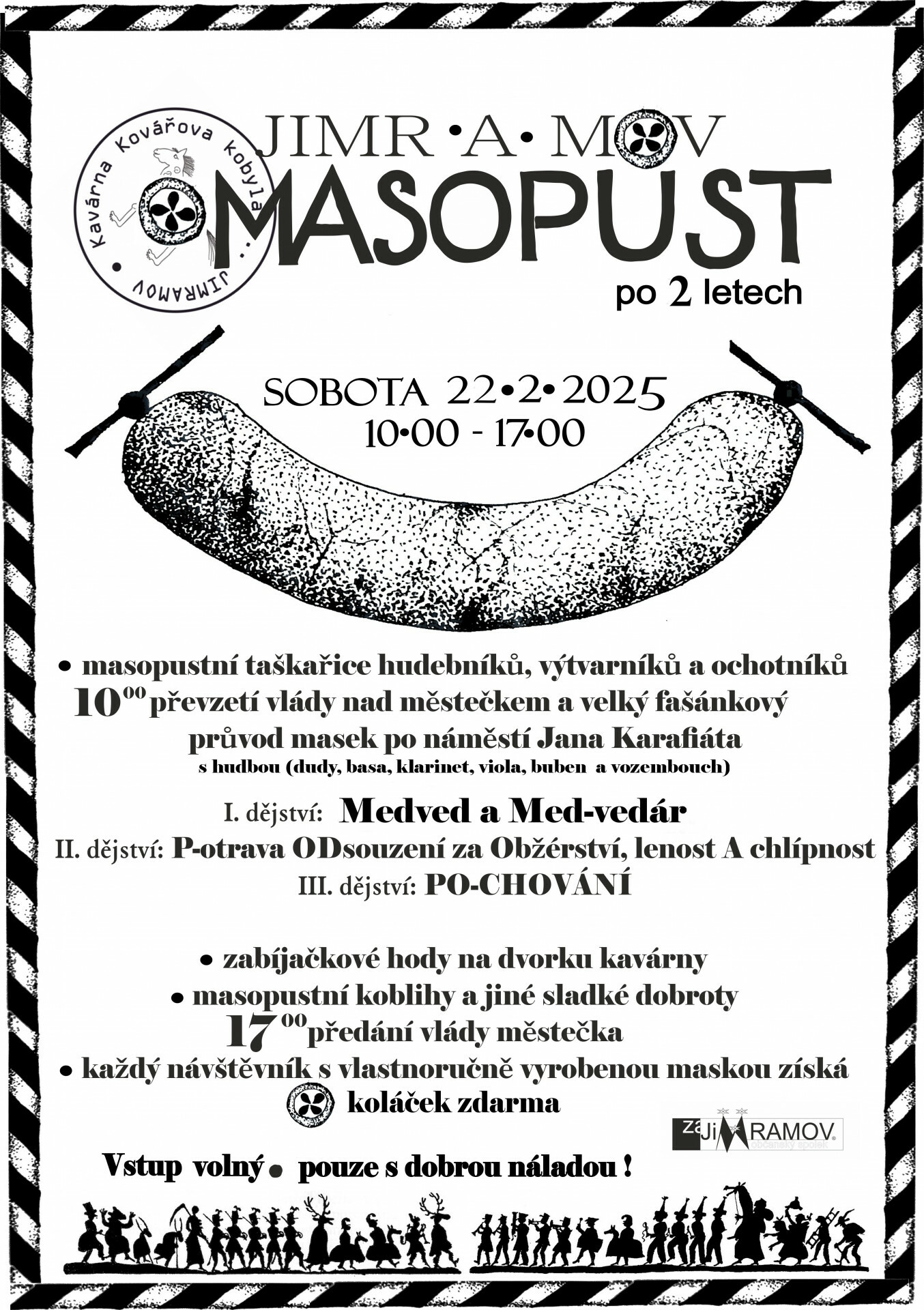 V sobotu 22. února se od 10:00 hodin do 17:00 hodin koná Jimramovský Masopust po 2 letech.