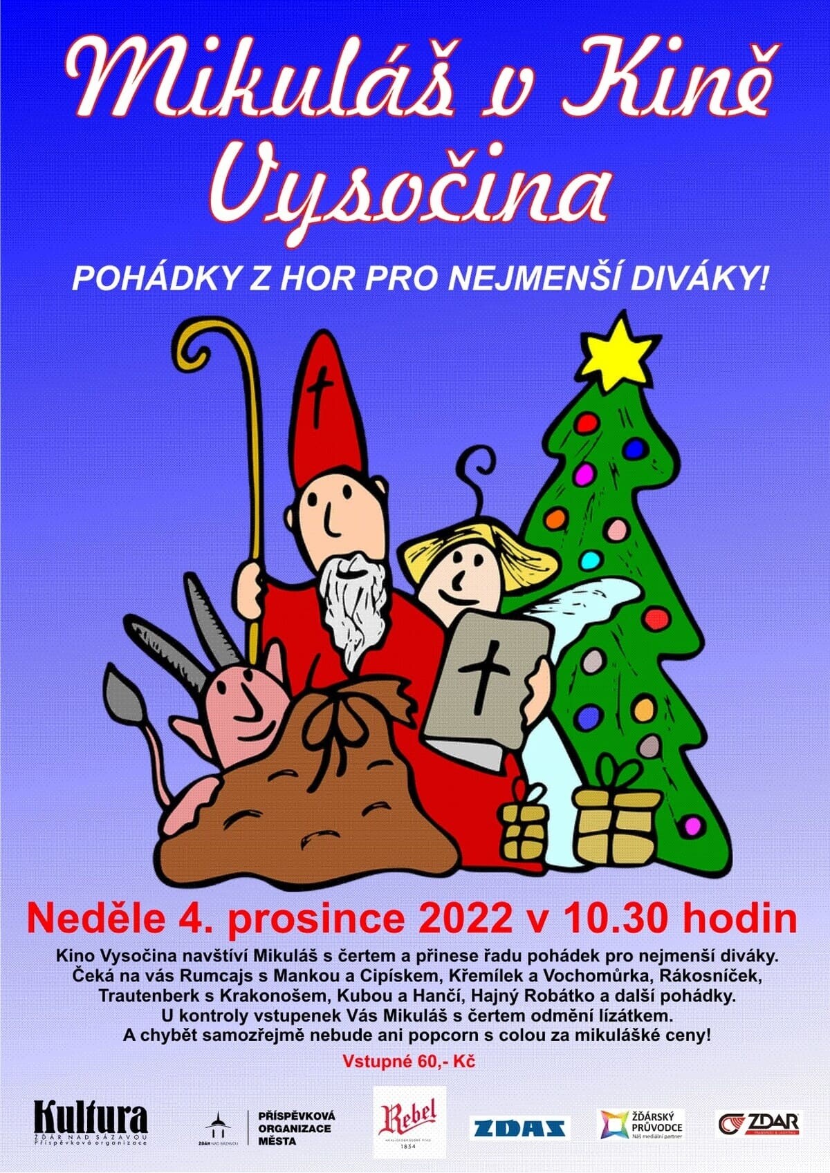 Kino Vysočina navštíví v neděli 4.12.2022 od 10:30 Mikuláš s čertem a přinese řadu pohádek pro nejmenší diváky.