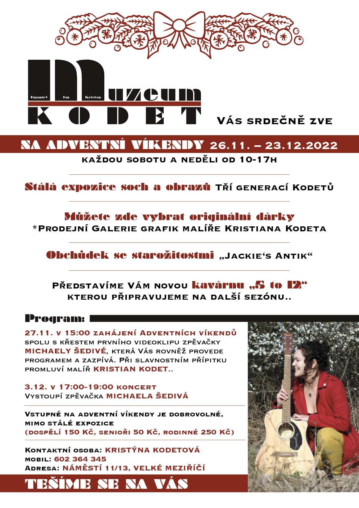 3. 12. 2022 od 17.00 hod. koncert Michaely Šedivé