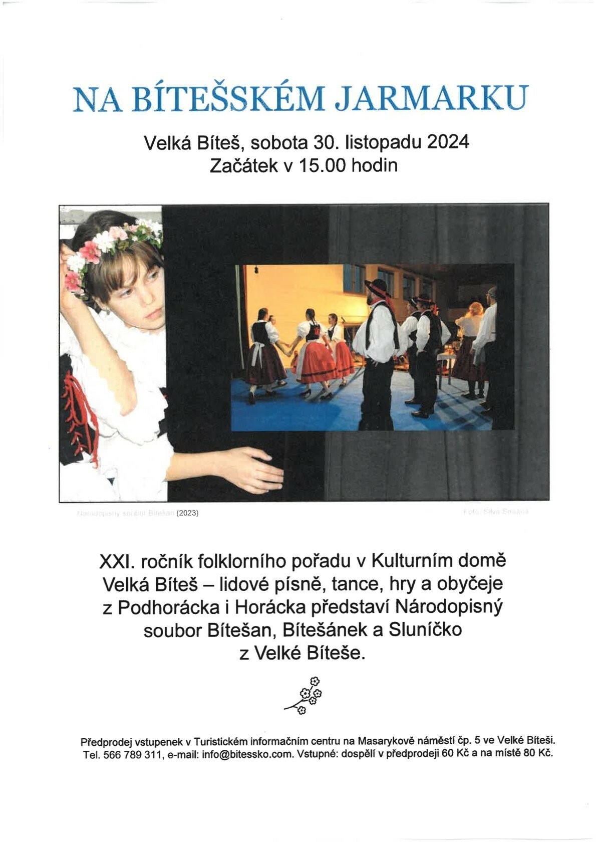 XXI. ročník folklorního pořadu v Kulturním domě ve Velké Bíteši - lidové písně, tance, hry a obyčeje z Podhorácka i Horácka