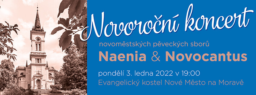 Novoroční koncert novoměstských sborů Novocantus a Naenia. Výtěžek z dobrovolného vstupného podpoří výstavbu Domova Pomněnka v Novém Městě na Moravě.