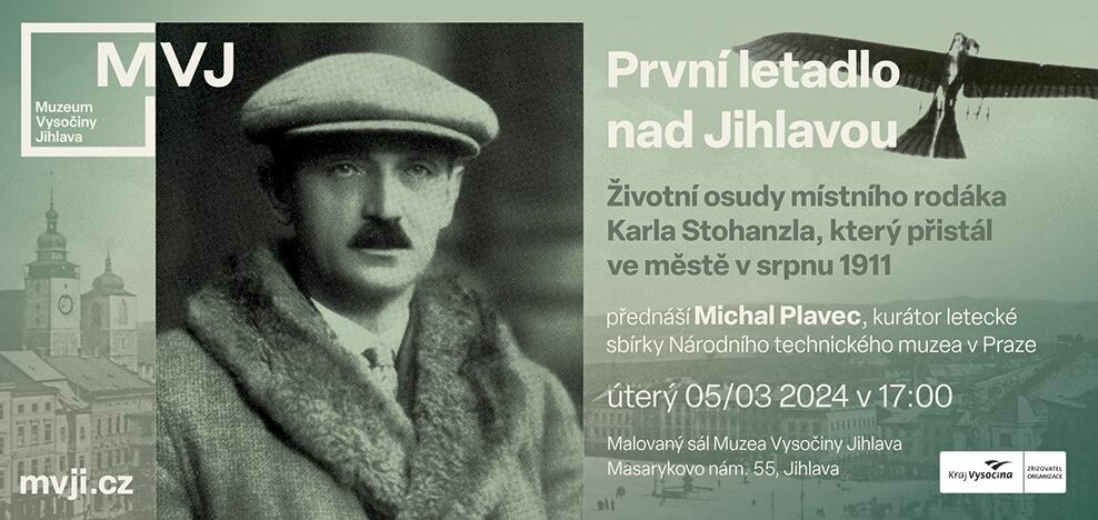 Přednáška První letadlo nad Jihlavou přiblíží životní osudy místního rodáka Karla Stohanzla, který přistál ve městě v srpnu 1911.