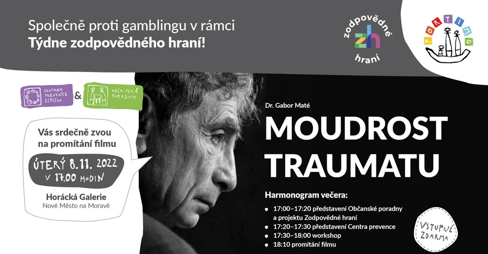 V rámci osvětové akce s názvem Týden zodpovědného hraní se v Horácké galerii v úterý 8. listopadu uskuteční promítání dokumentárního snímku Moudrost traumatu. Akce začíná v 17 hodin představením Občanské poradny, Centra prevence a samotného projektu Zodpovědného hraní. Součástí programu bude i workshop, který začíná v 17:30 hodin. Samotné promítání...